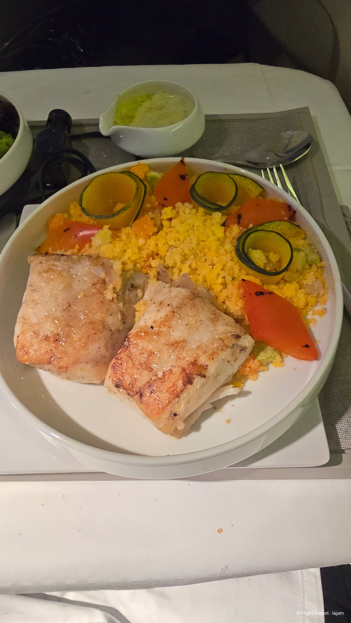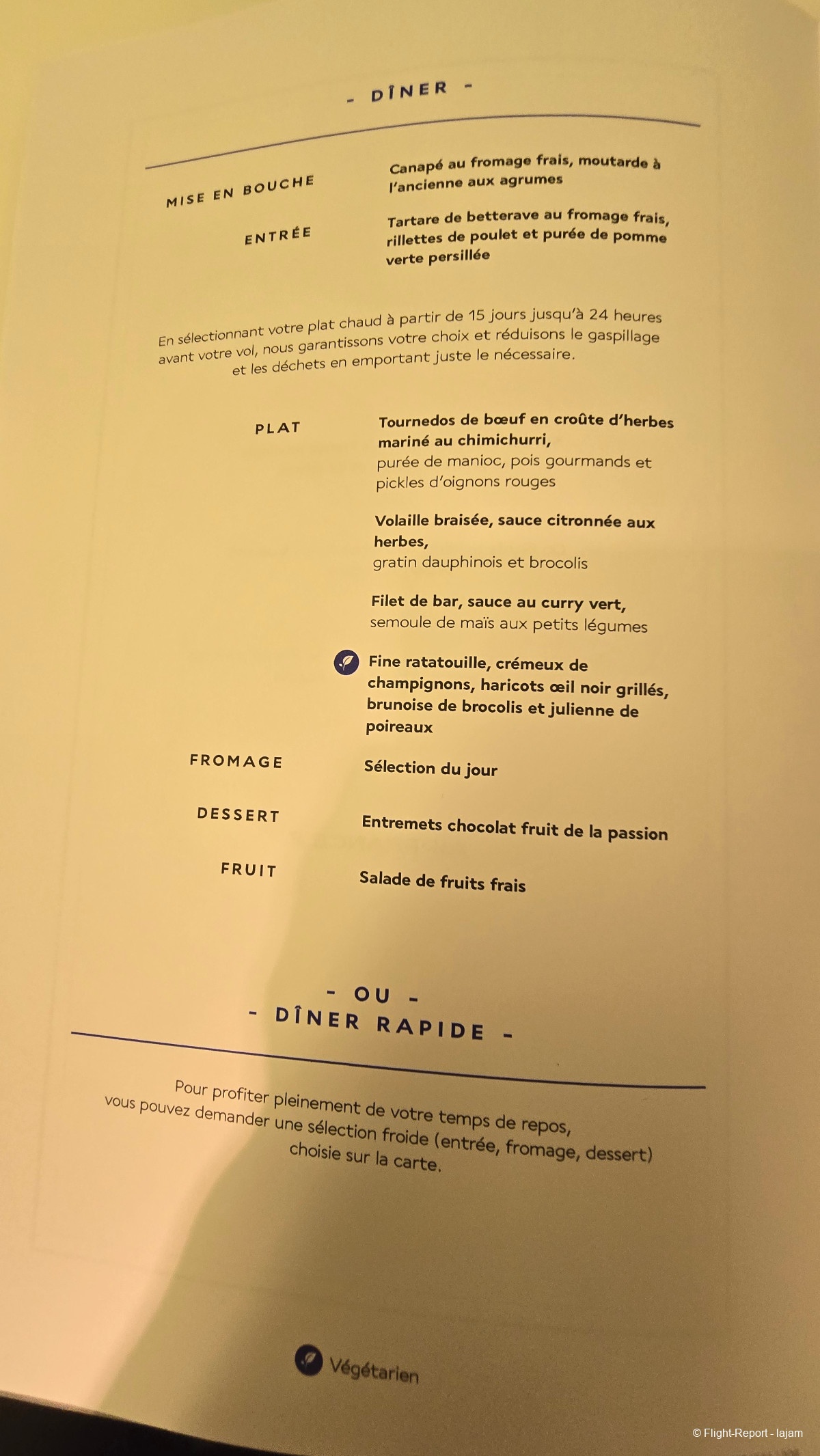 La PNC vient me demander mon choix de plat. Je prends le bar