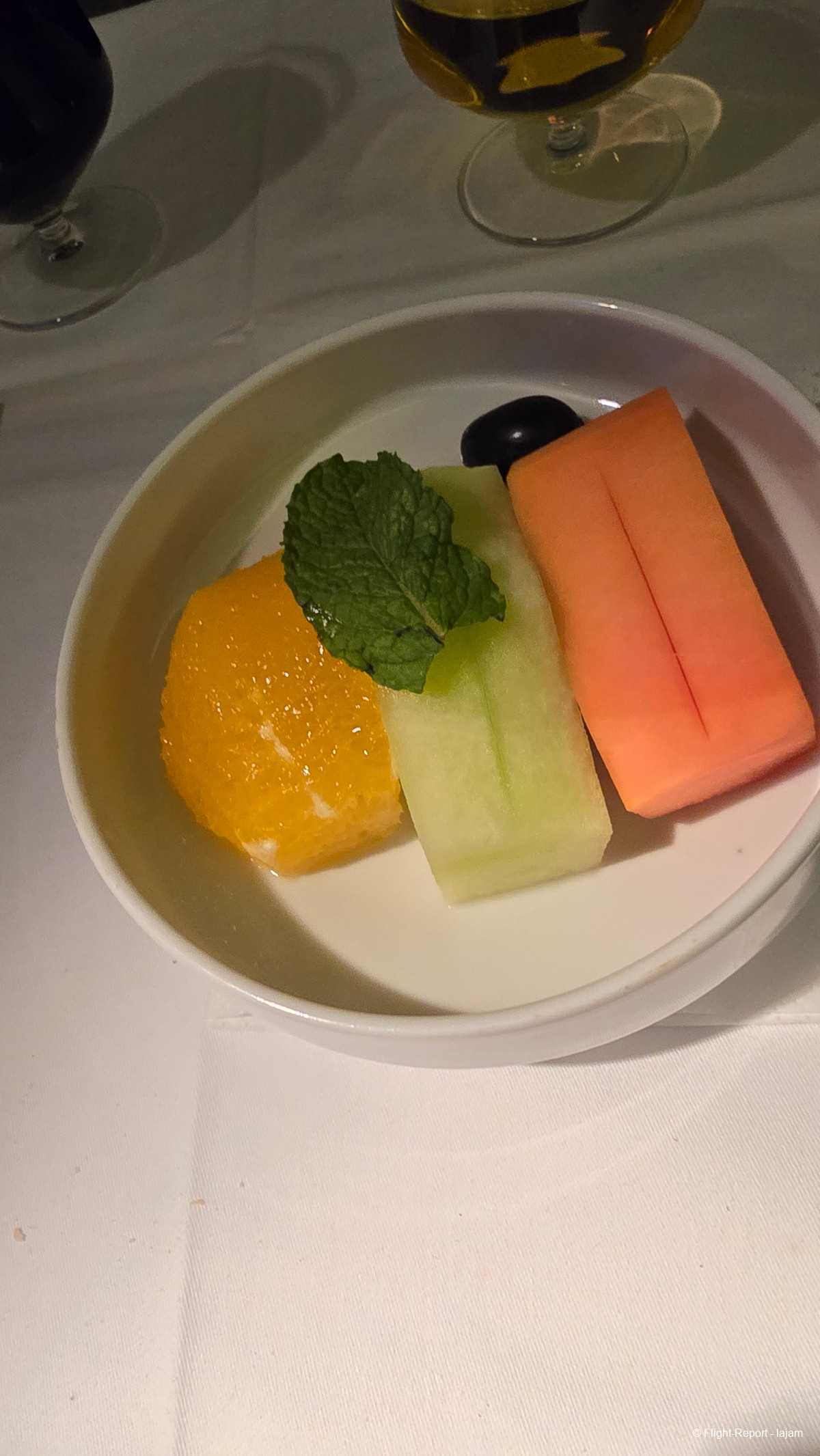 Salade de fruits en dessert: melon, ananas et je ne sais plus. Sans plus. Je n’ai pas testé le dessert car je commençais à être plein. Dans 30 minutes, je dors