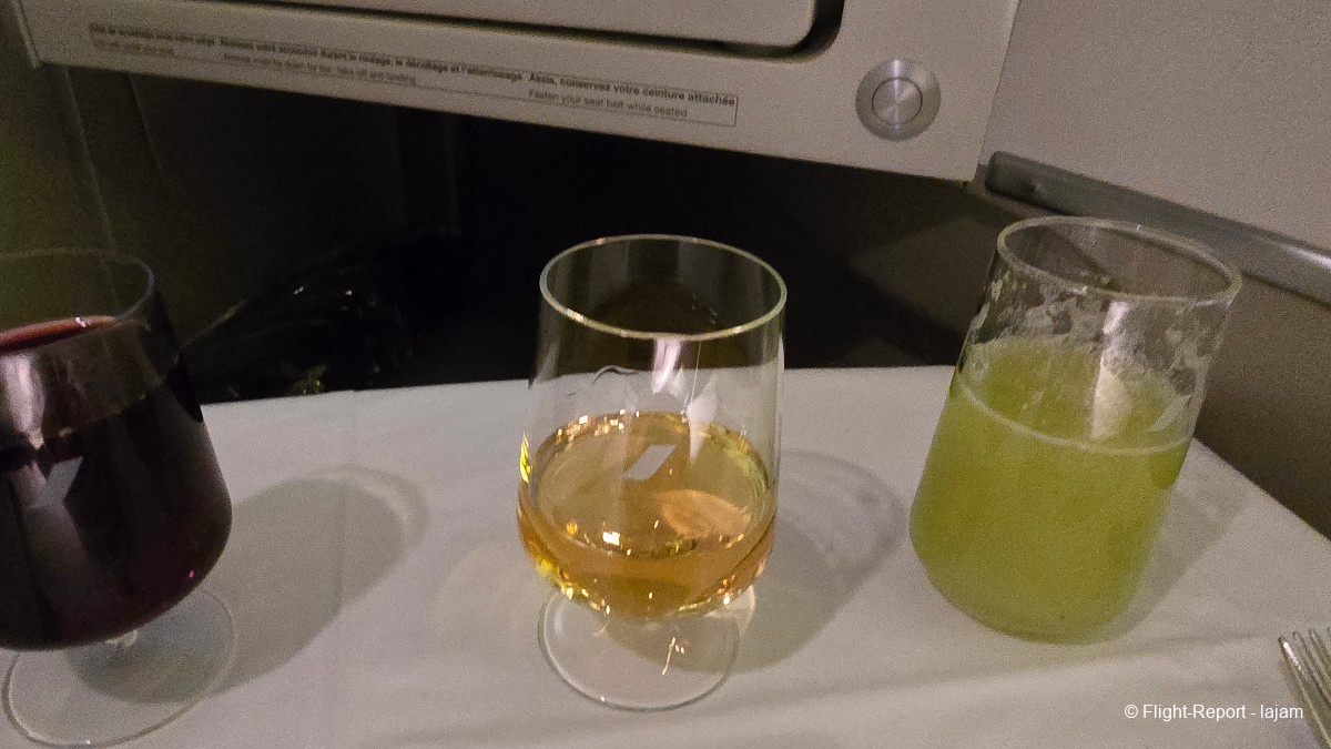 Distribution champagne 20 min avant Décollage. Mocktail au chou qui avait l’air bon mais j'ai choisi le champagne. Après plus de 4h00 d’attente, je n’en peux plus !!!