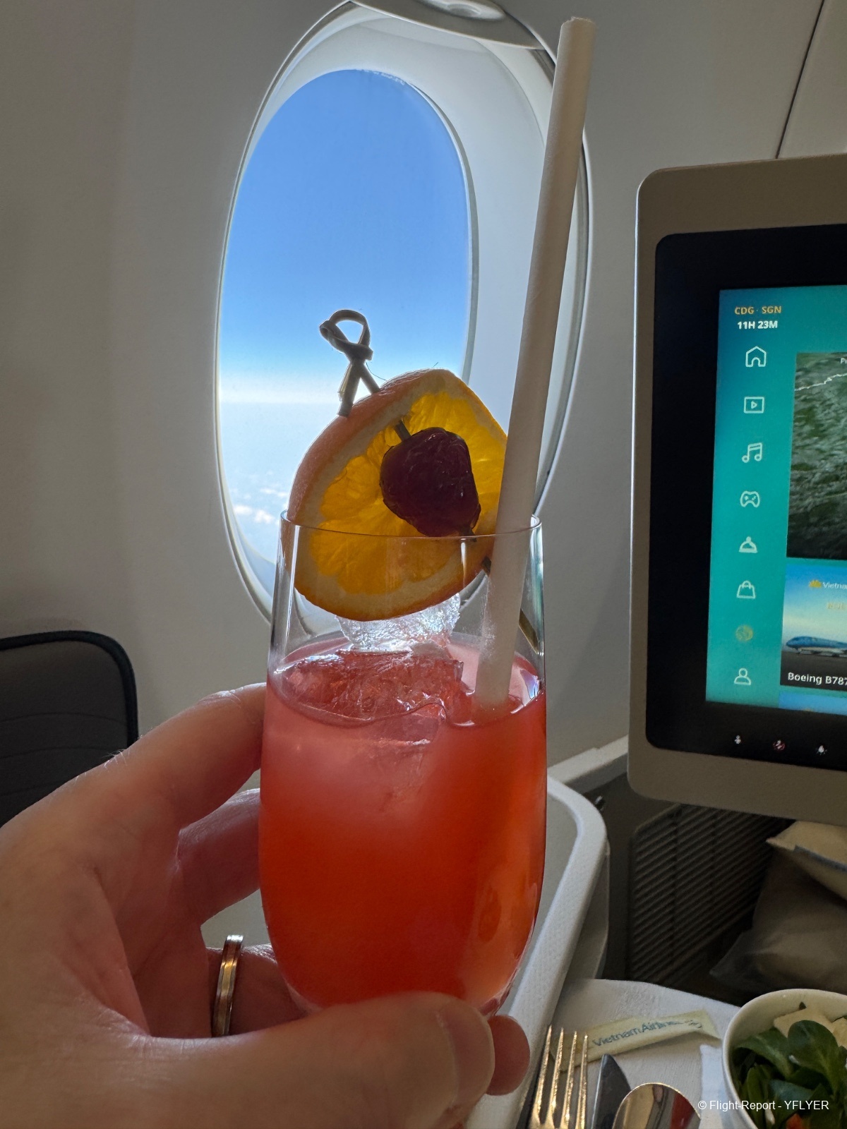 • Boissons : le cocktail est puissant, presque trop pour un vol long-courrier.
