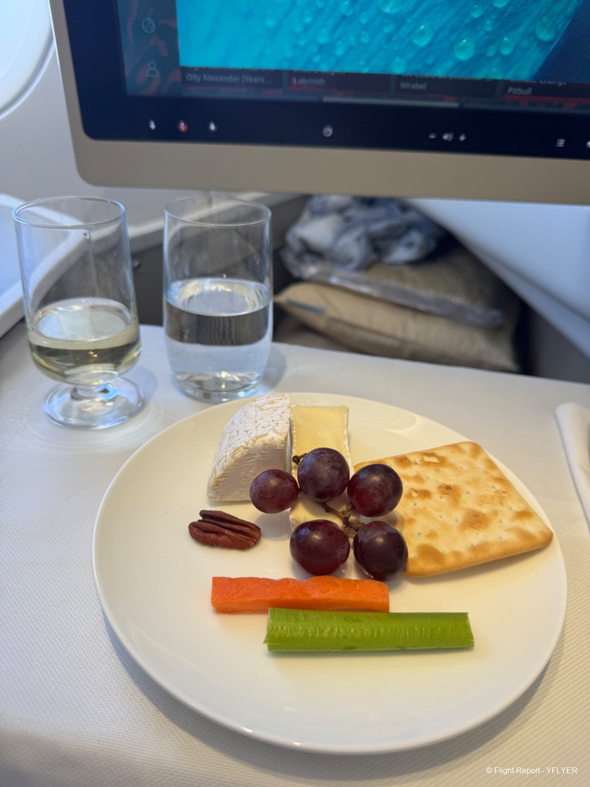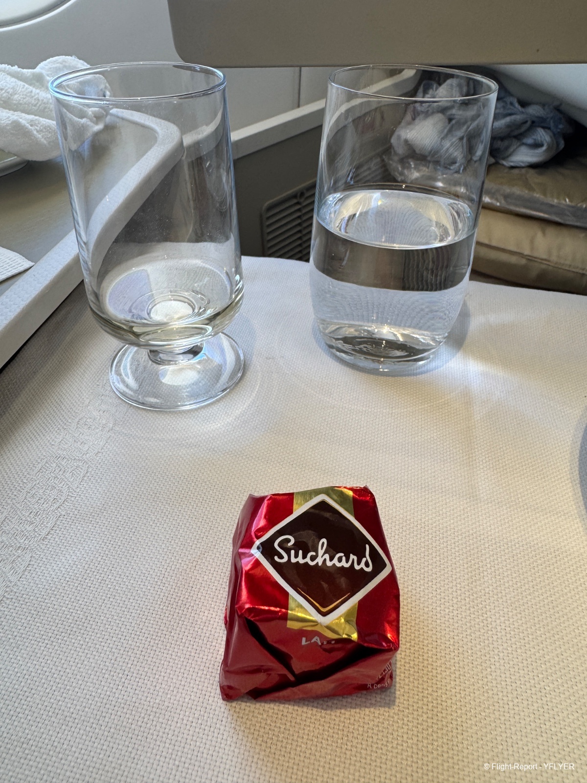 - bouteille d’eau… Cristaline. Un choix curieux pour une classe affaires.