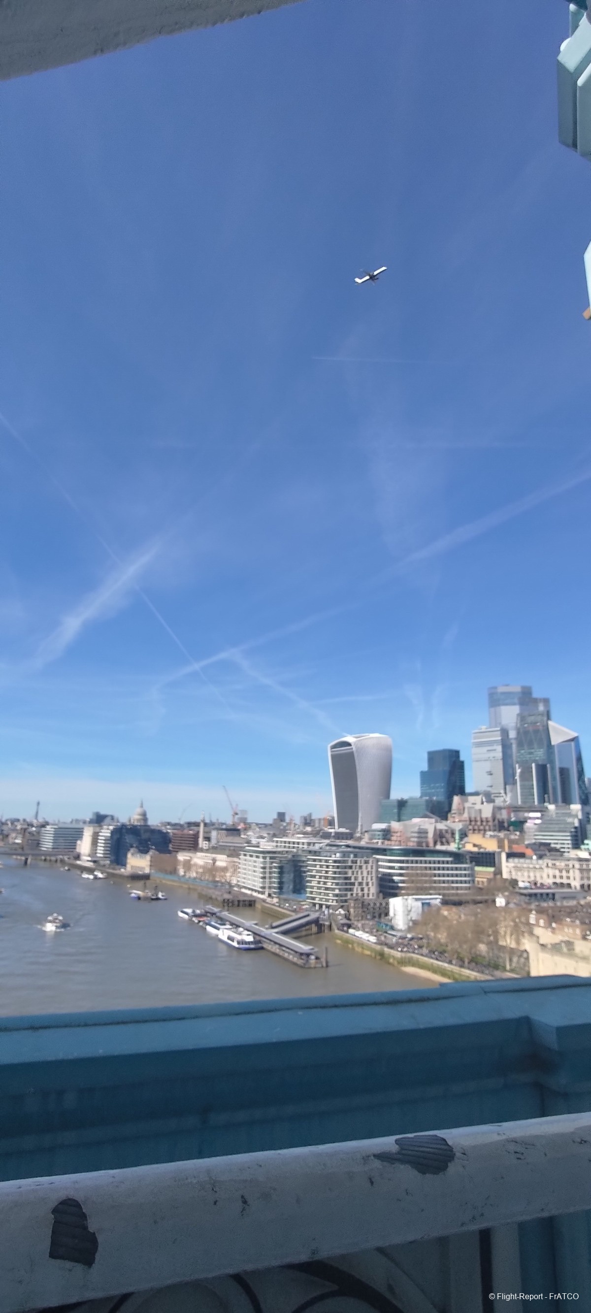 L'habituelle vue du Château de Windsor avant un virage par la gauche, puis une belle vue de Farnborough, qui est un peu Le Bourget londonien avec moins de trafic