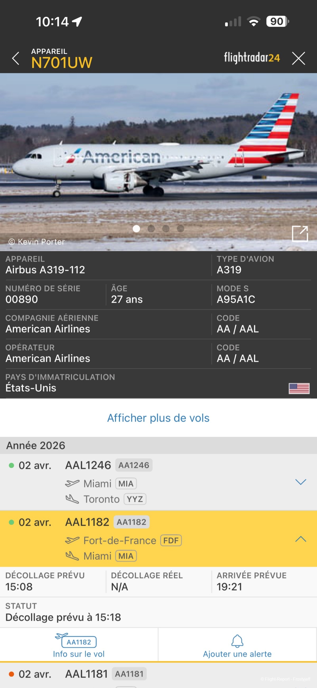 Heureusement pour moi, il y a une alternative toute simple à portée de main depuis FDF : AA, en direct pour MIA avec un vol tous les 2 jours.