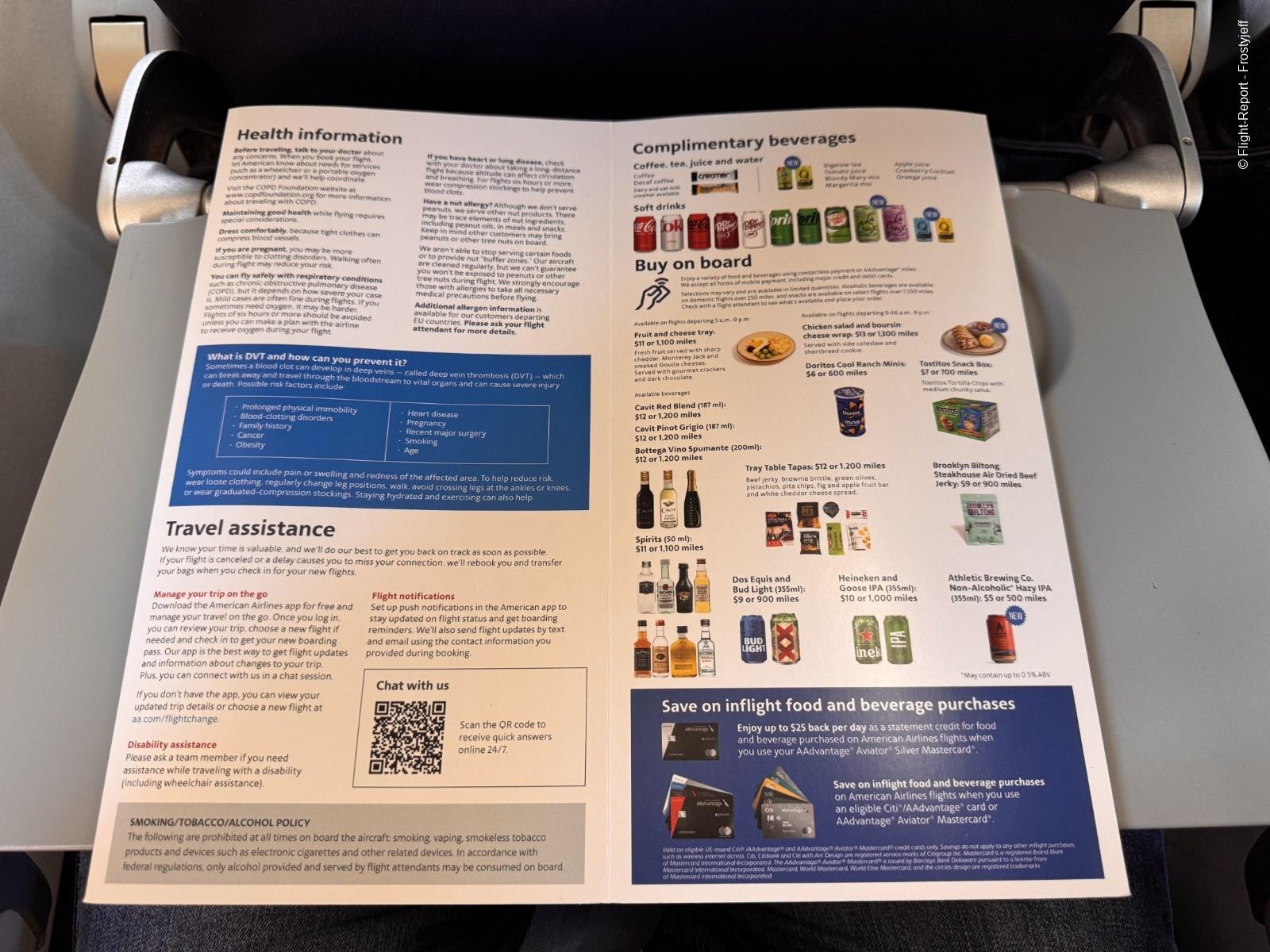 La petite littérature de bord me rassurera sur la présence d'un wifi, qui plus est gratuit (et plutôt rapide) mais accessible aux membres AA.