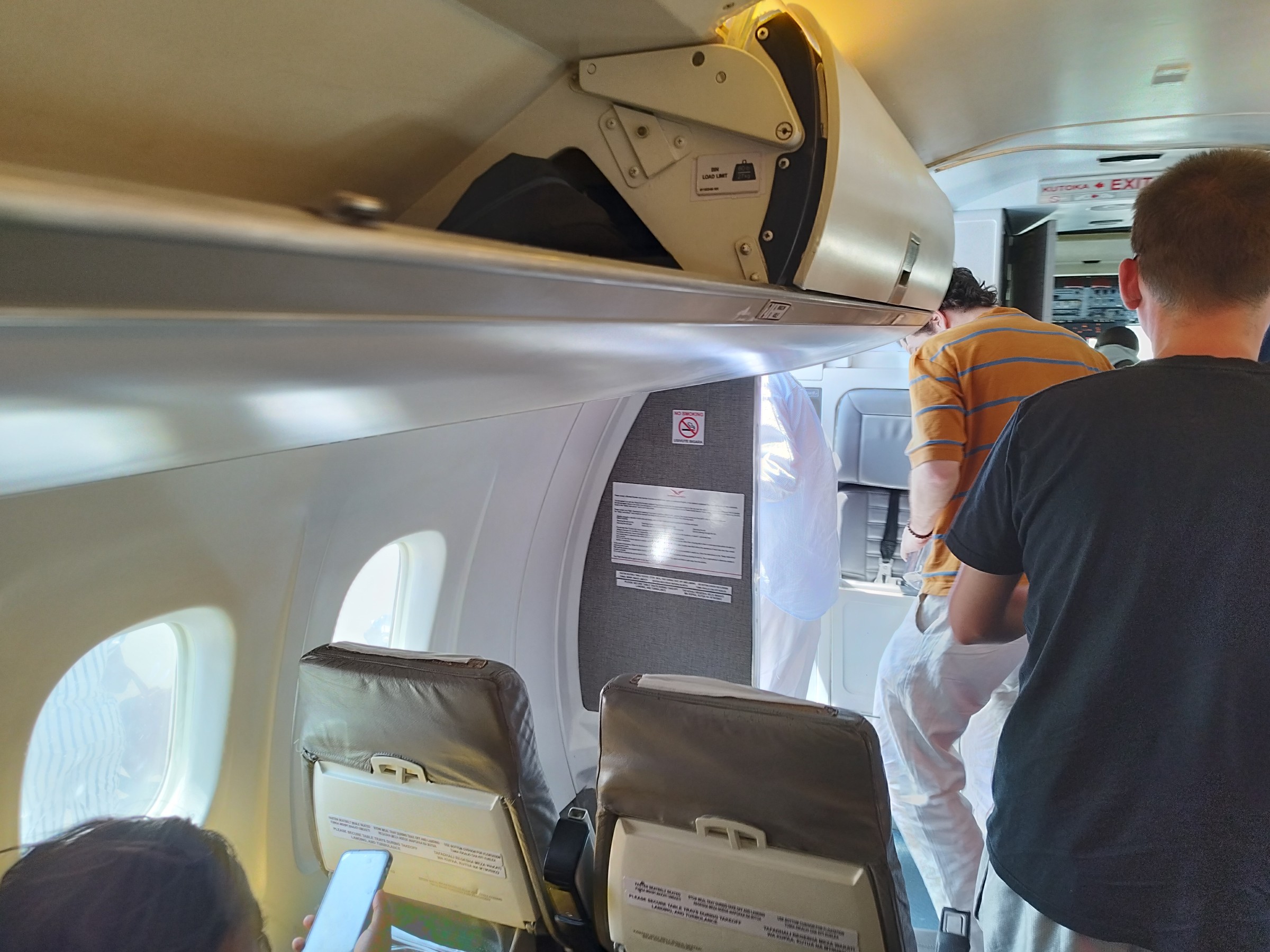 Entrée dans la cabine de notre Dash-8 de 34 ans, dont les 20 dernières années au service des Nations Unis pour des vols humanitaires, avant de rejoindre Skyward Express.