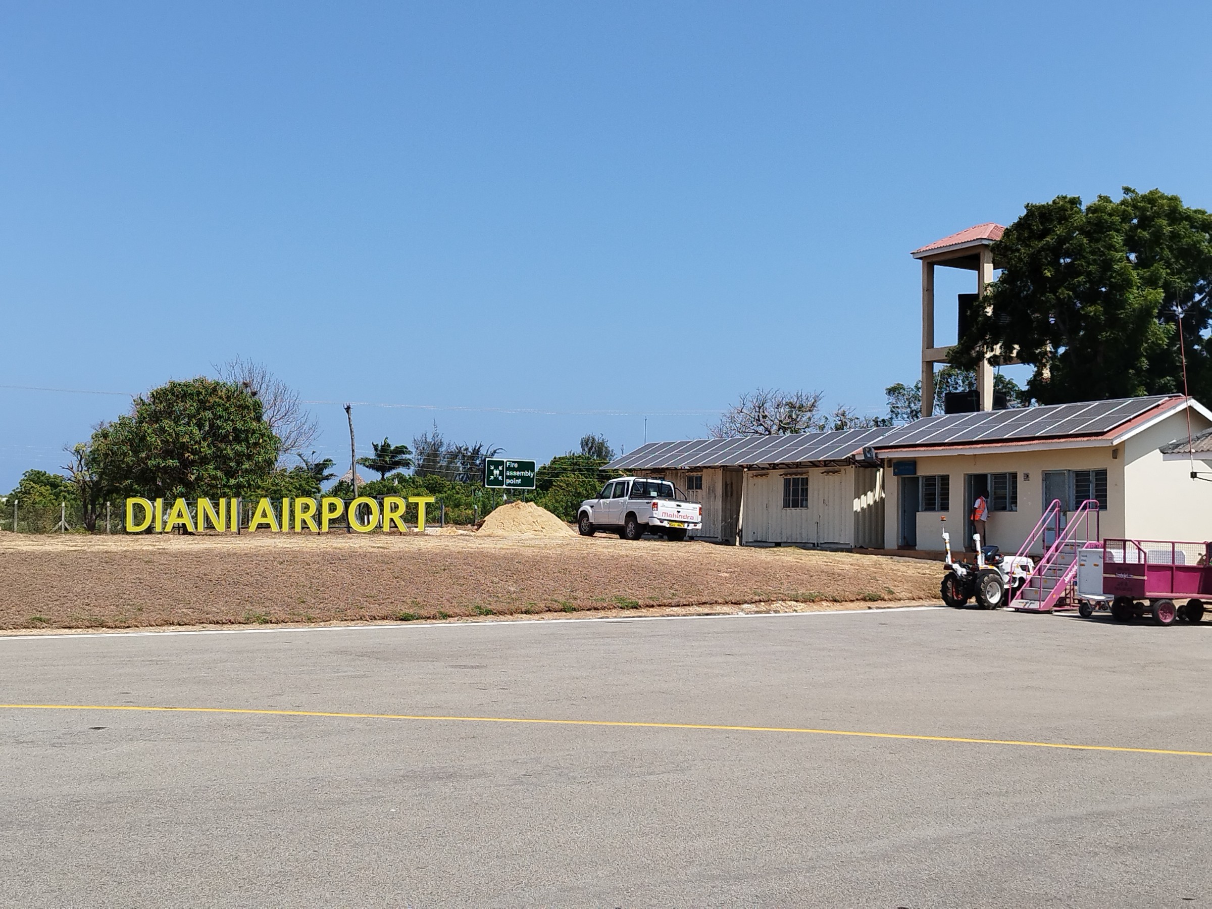 L'aérport se trouve à environ 1 km (15 mins de marche) de la plage, bien plus jolie que celles de Mombasa.