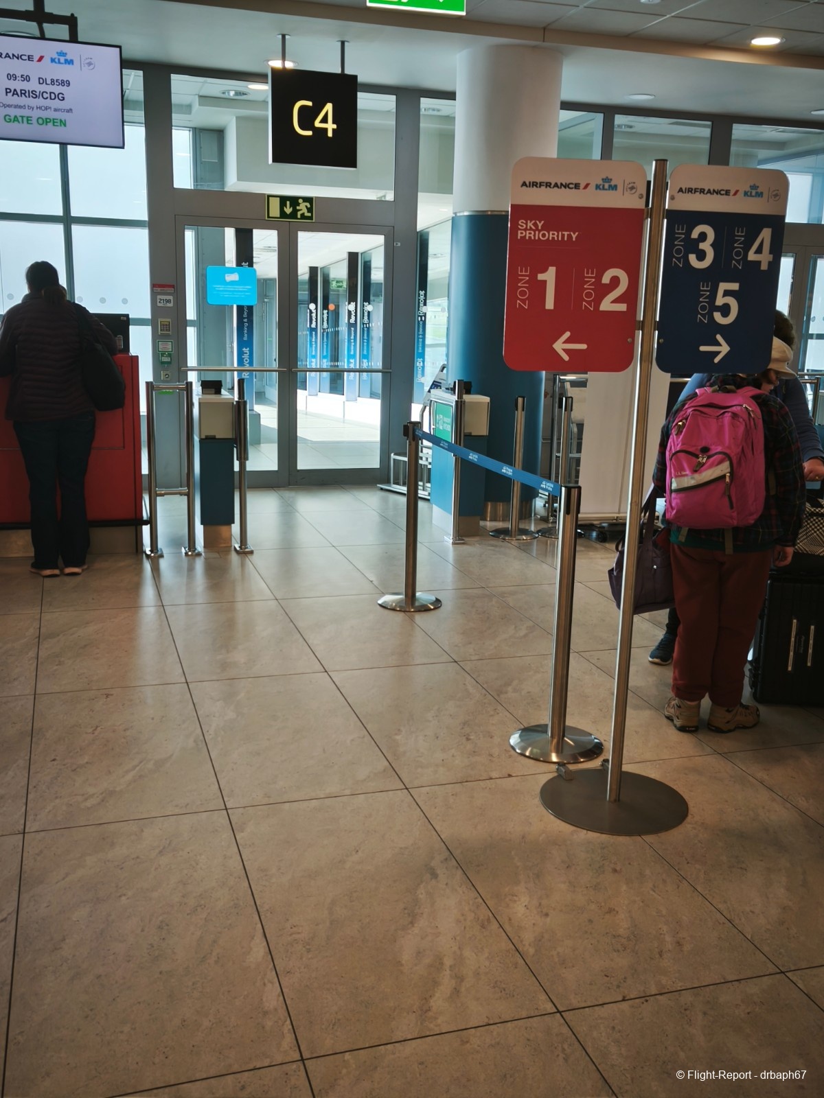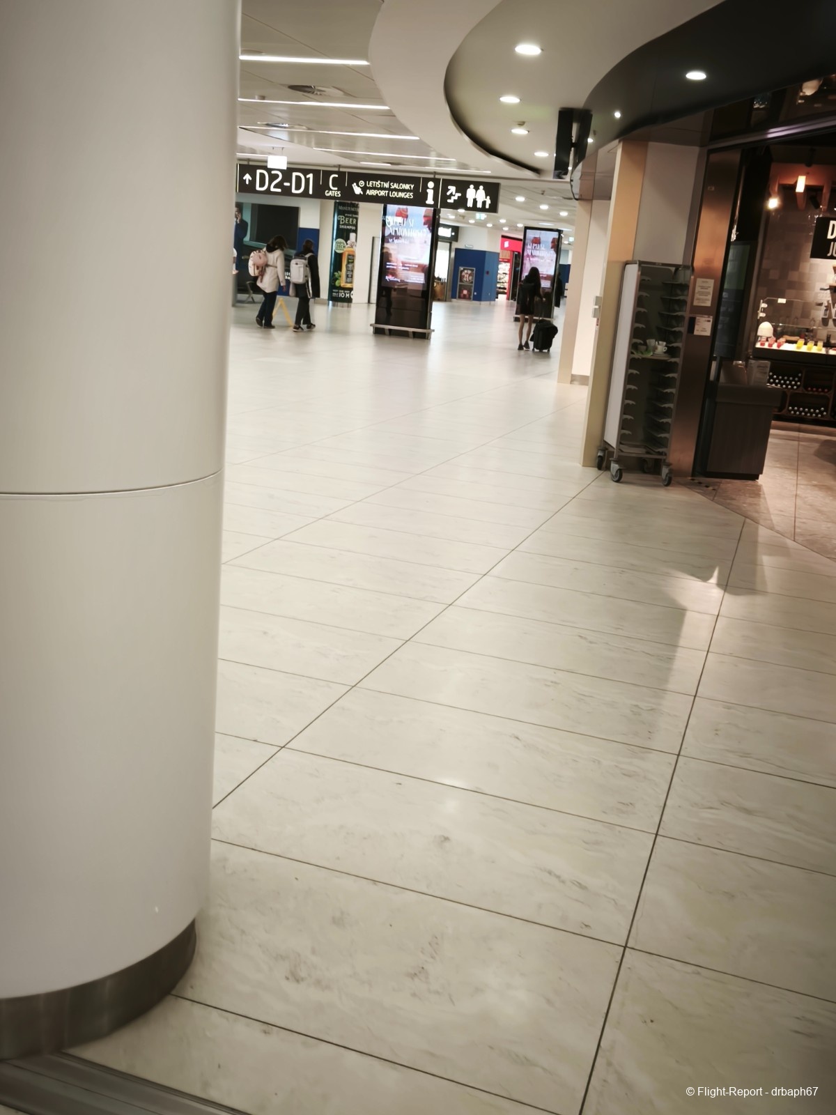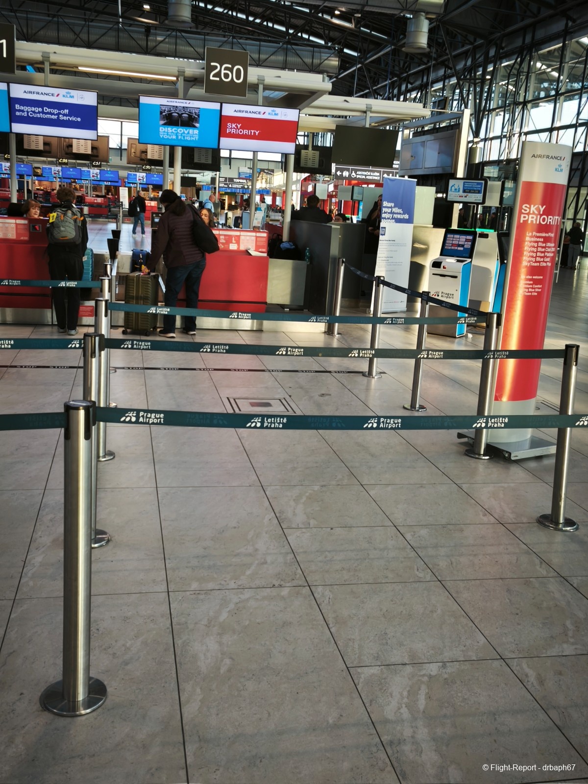 J'arrive à 6h55 à PRG en taxi après un court trajet. Le hall est désert mais les comptoirs Sky Priority sont ouverts. Étant pressé à l'arrivée pour me rendre à un anniversaire je décide de ne pas enregistrer de bagages.
