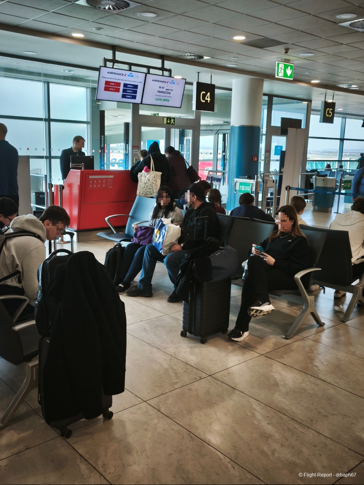 C'est un E170, l'embarquement est donc rapide. Je profite de ce temps pour faire connaissance avec mon environnement pour CDG