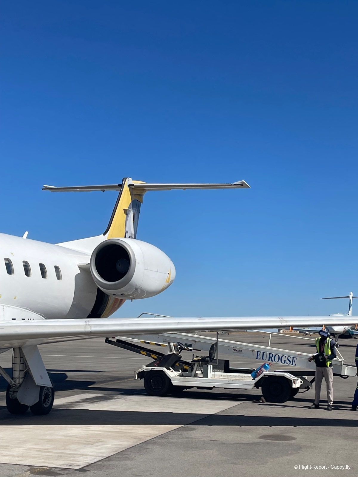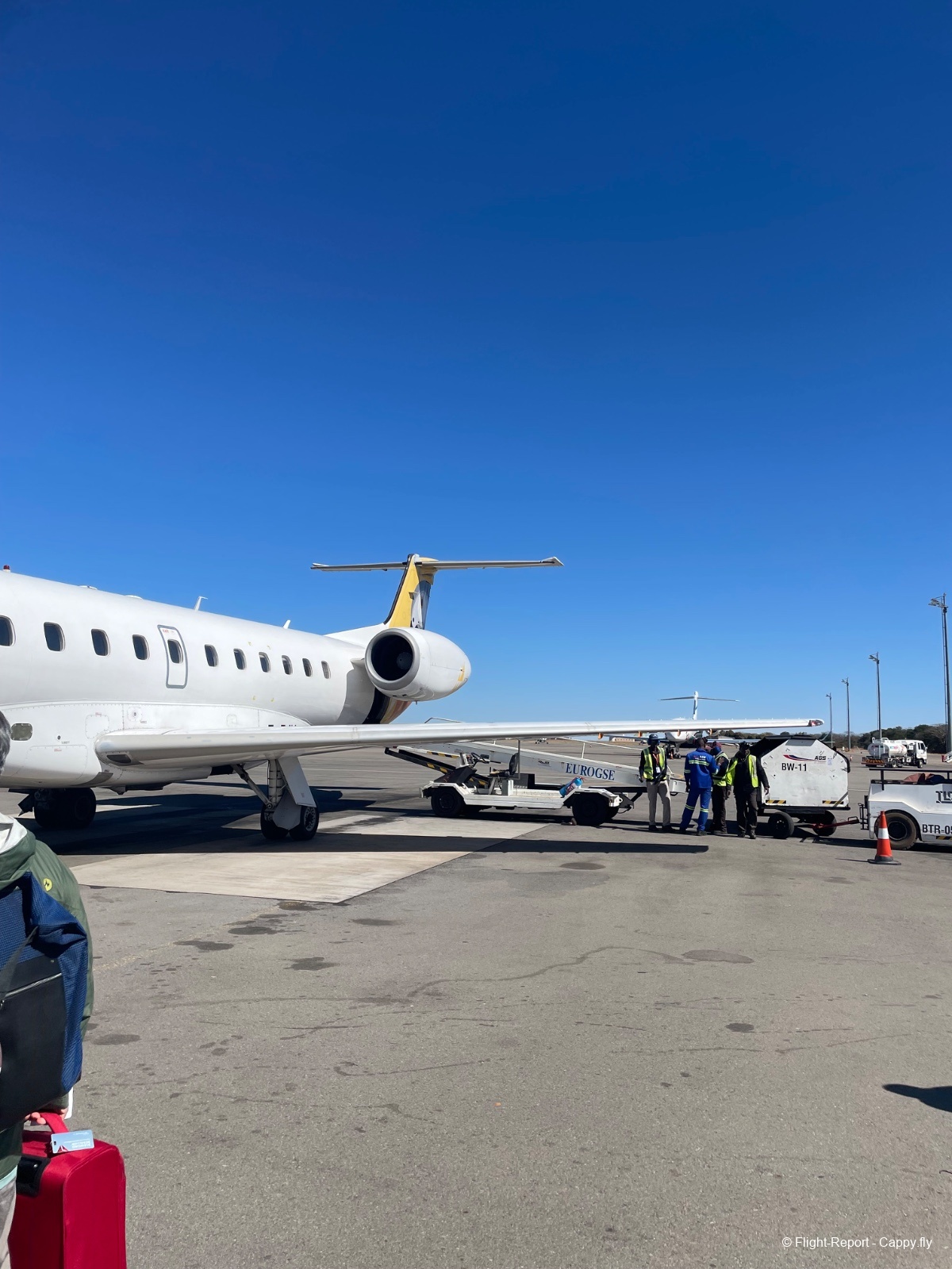 En marchant vers la porte, je découvre ce magnifique ERJ 145 de Air Zimbabwe ce qui est plutôt rare.