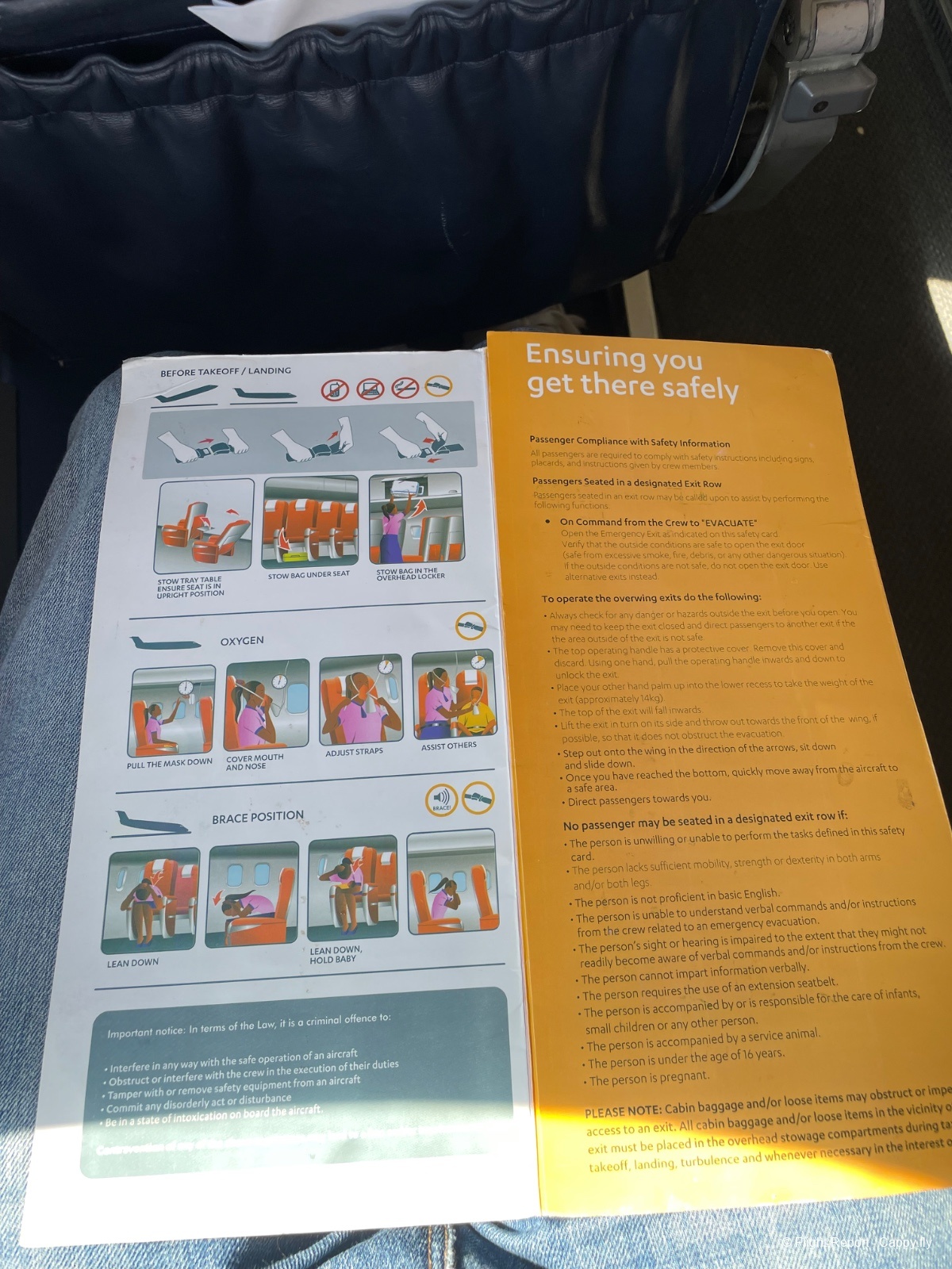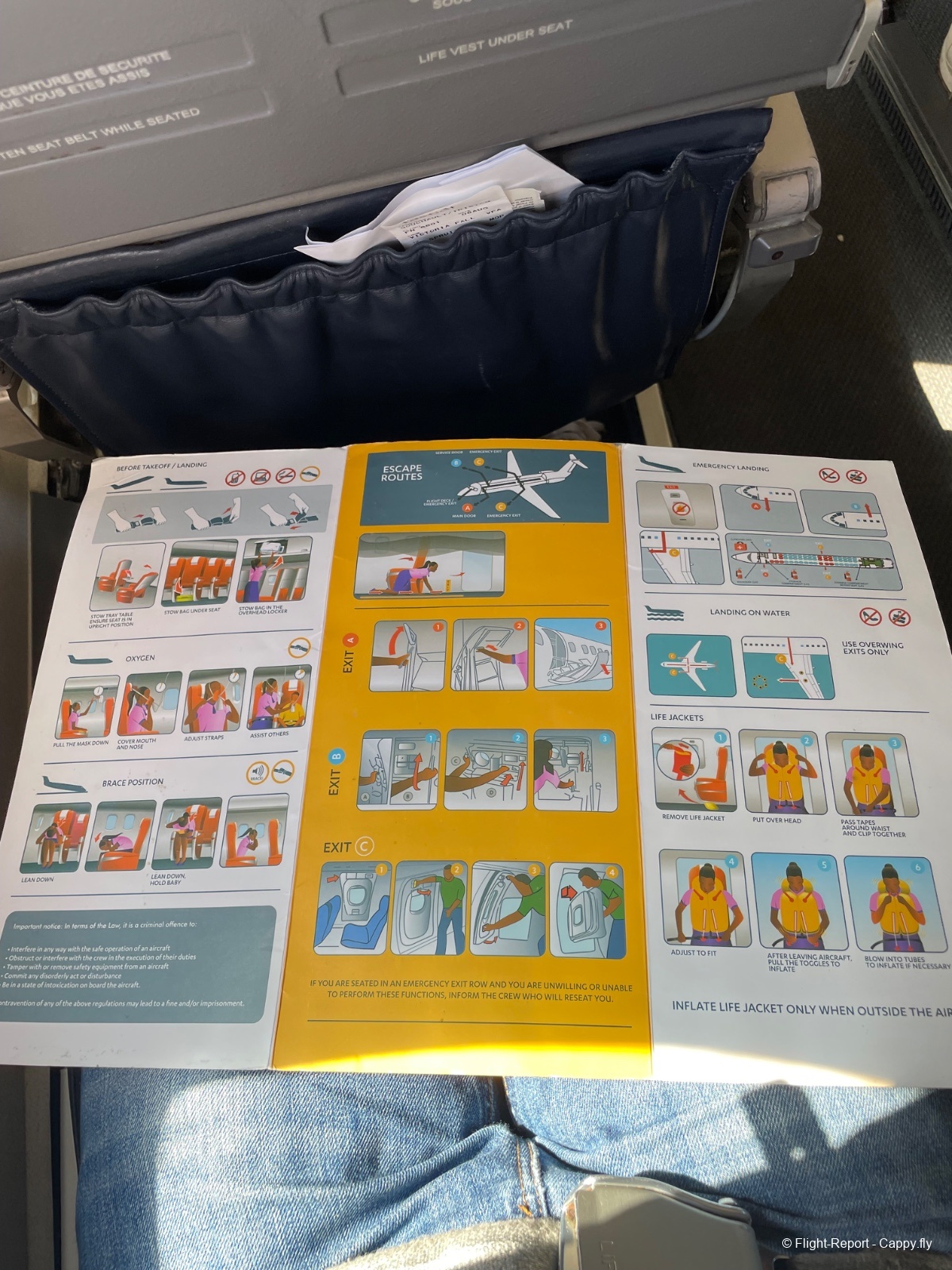 Et la Safety Card aux couleurs de la compagnie.