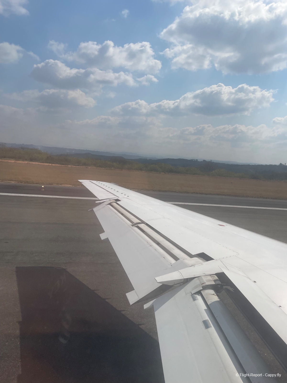 Depuis le hublot, on voit l’aéroport de départ qui est au milieu de la nature ! Magique !