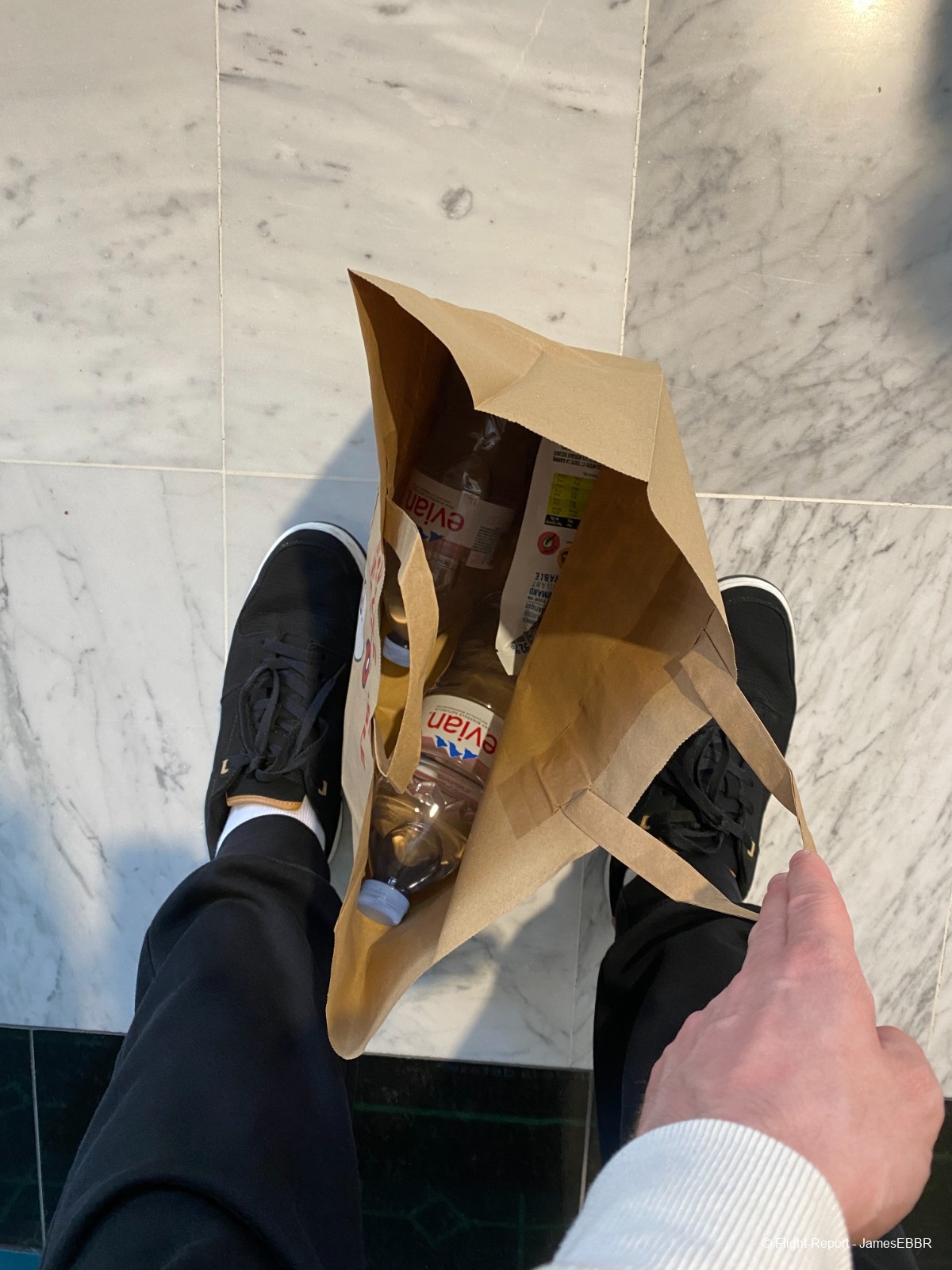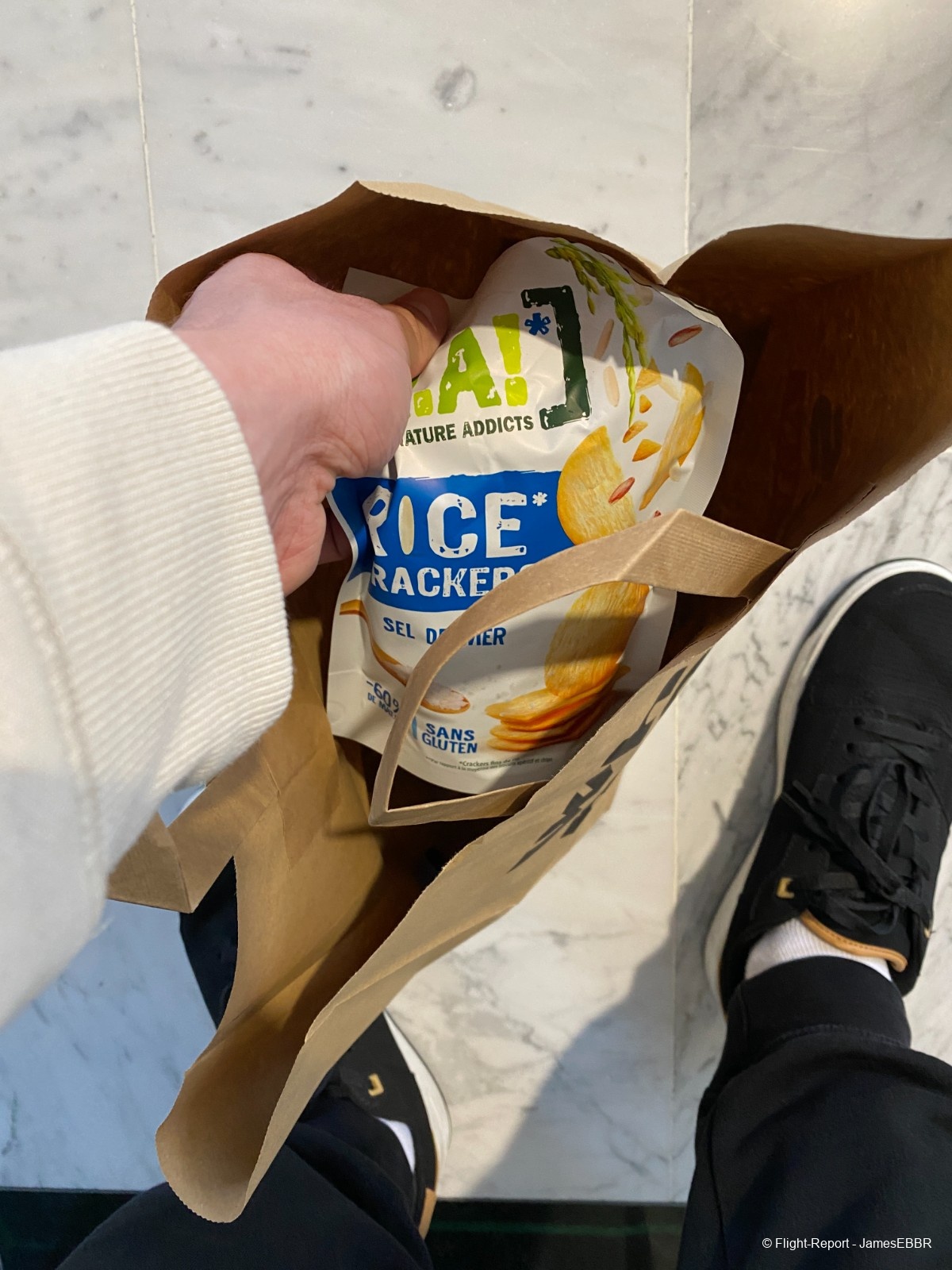 Comme toujours avant un long courrier, je décide de passer en boutique (ici au Relay) pour acheter deux bouteilles d'eau et des snacks (car je trouve qu'on donne jamais assez d'eau, même en J… même en P d'ailleurs).