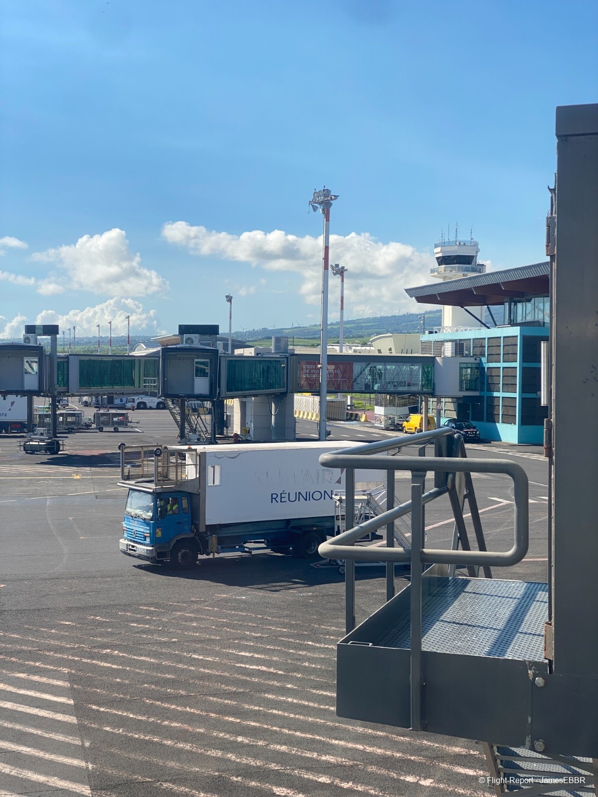 Les portes s'ouvrent et je suis immédiatement choqué par la chaleur qu'il fait à la Réunion en mars. C'était un four. Je pense que c'est la chaleur la plus intense que j'ai ressentie dans ma vie… Plus chaude que Tokyo en été, plus chaude que le Ghana pendant la saison des pluies, plus chaude que Mumbai… c'était wow. Une expérience.