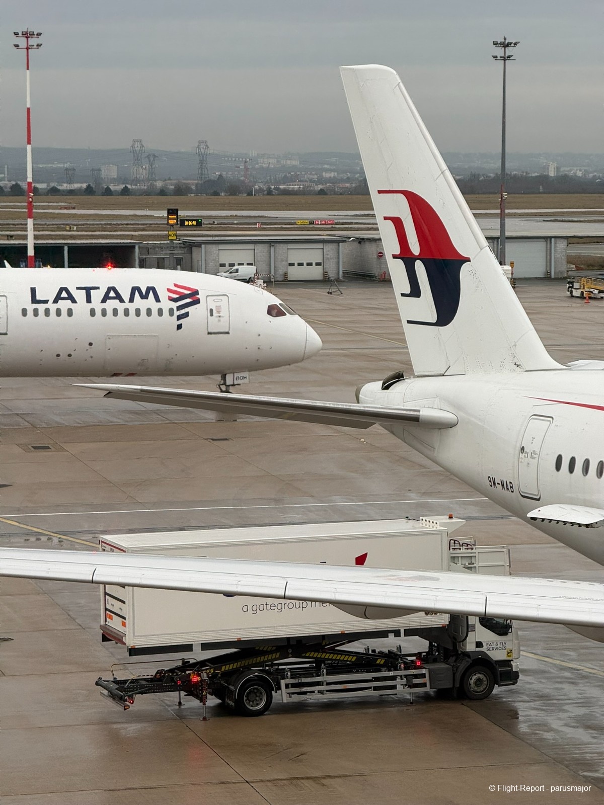 Un peu de spotting avec du 320 AF qui vient de se poser sur le doublet sud, le 787-9 quotidien de LATAM en provenance de Guarulhos, et toujours ce 350 de MH en préparation pour Kuala Lumpur.