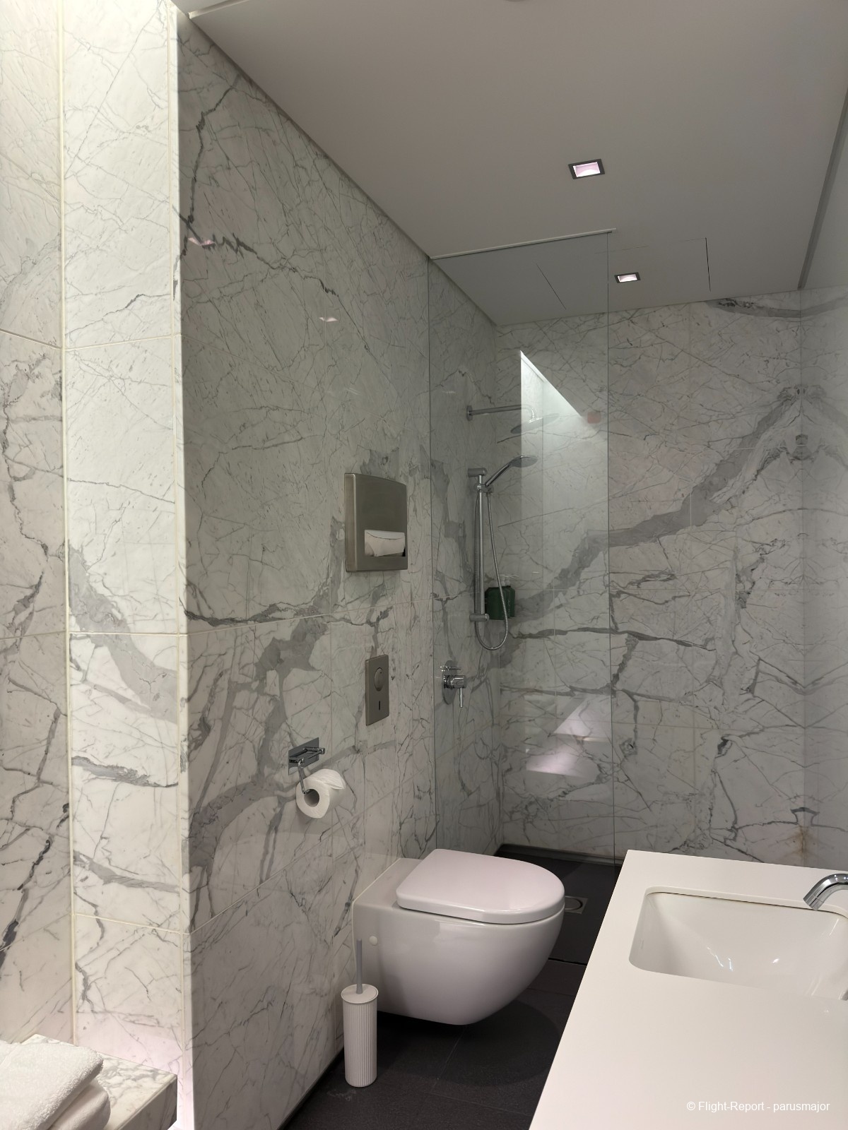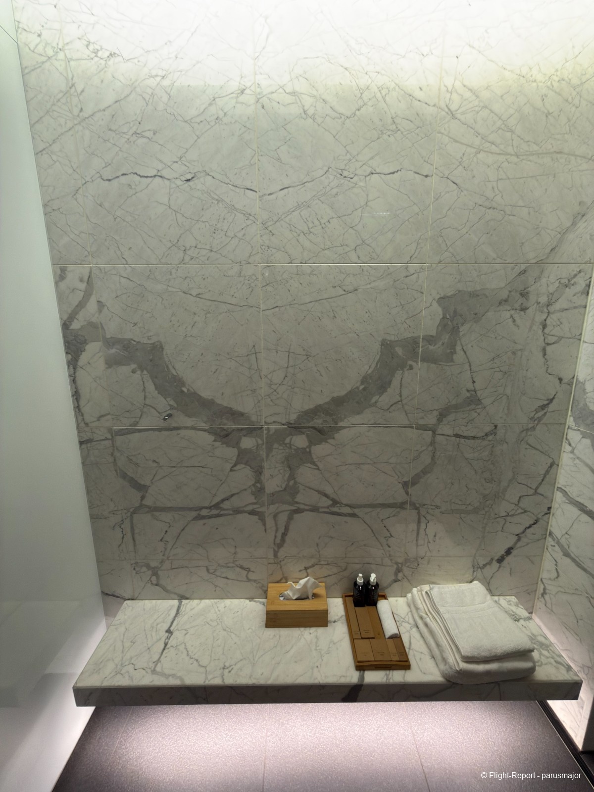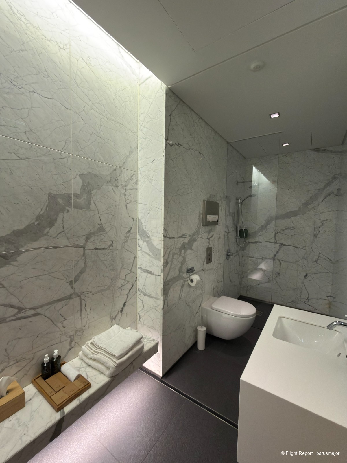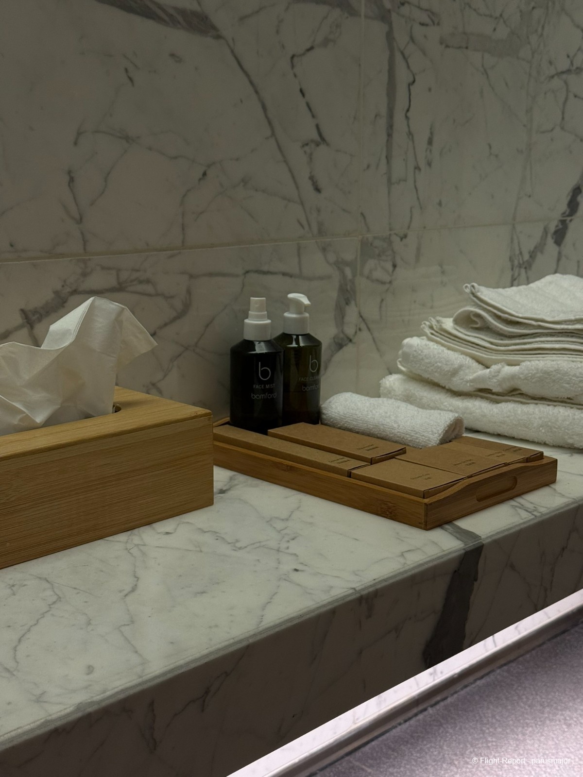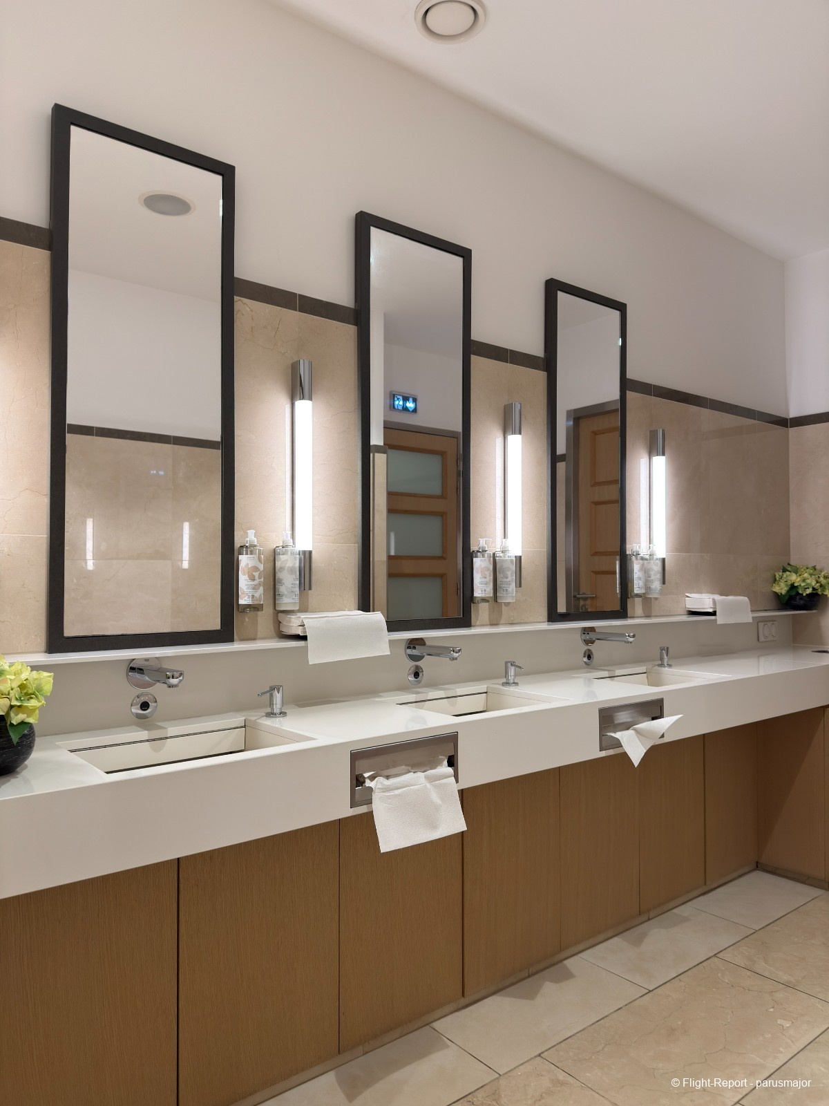 Passage par l'espace travail, les sanitaires et salles d'eau : c’est impeccable, bien agencé et équipé. Le lounge dispose aussi d'une douche (non immortalisée), idéal avant de prendre son vol.