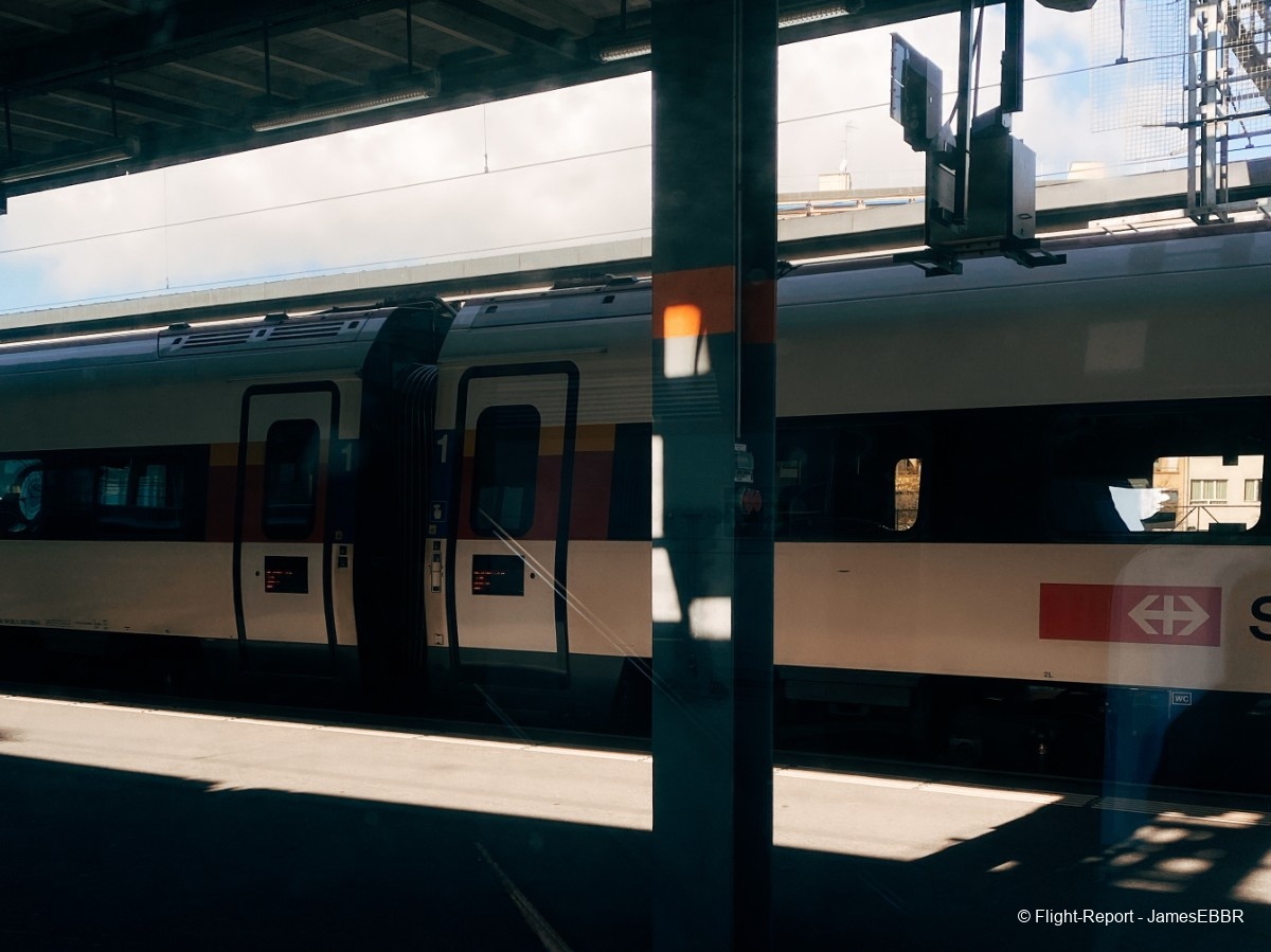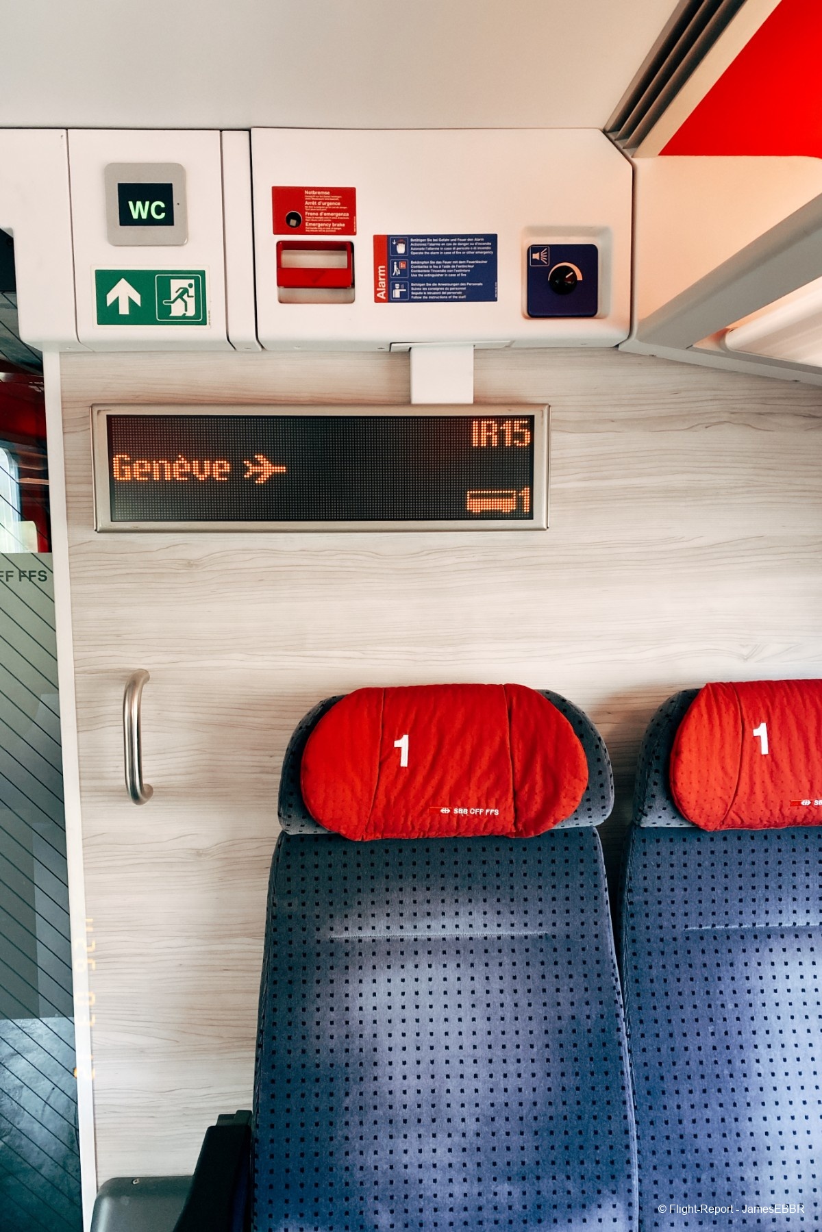 J'embarque à 10h10, en première classe, pour ce trajet très rapide à bord de l'IR15 en provenance de Lucerne. (J'aimerais préciser qu'il est totalement inutile de voyager en première classe sur cette ligne, car ces trains sont constamment vides, sauf dans l'autre sens entre 21h00 et minuit, surtout le week-end, lorsqu'il y a beaucoup d'arrivées à GVA).