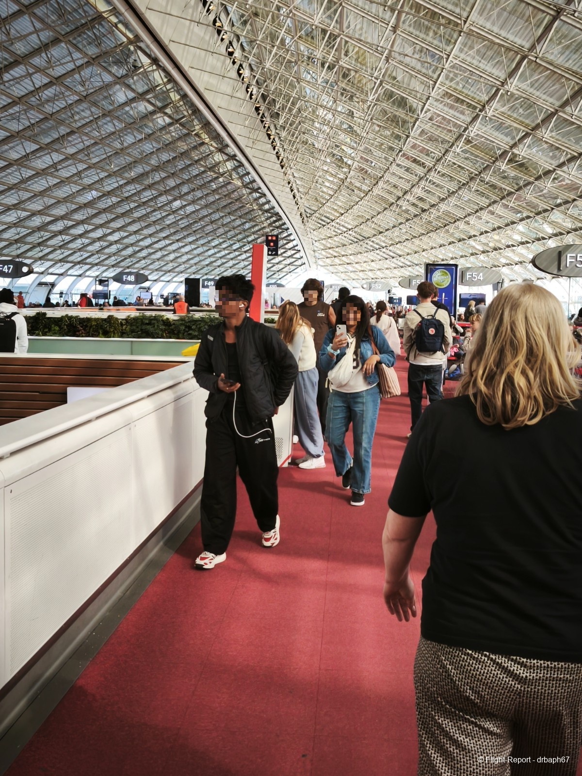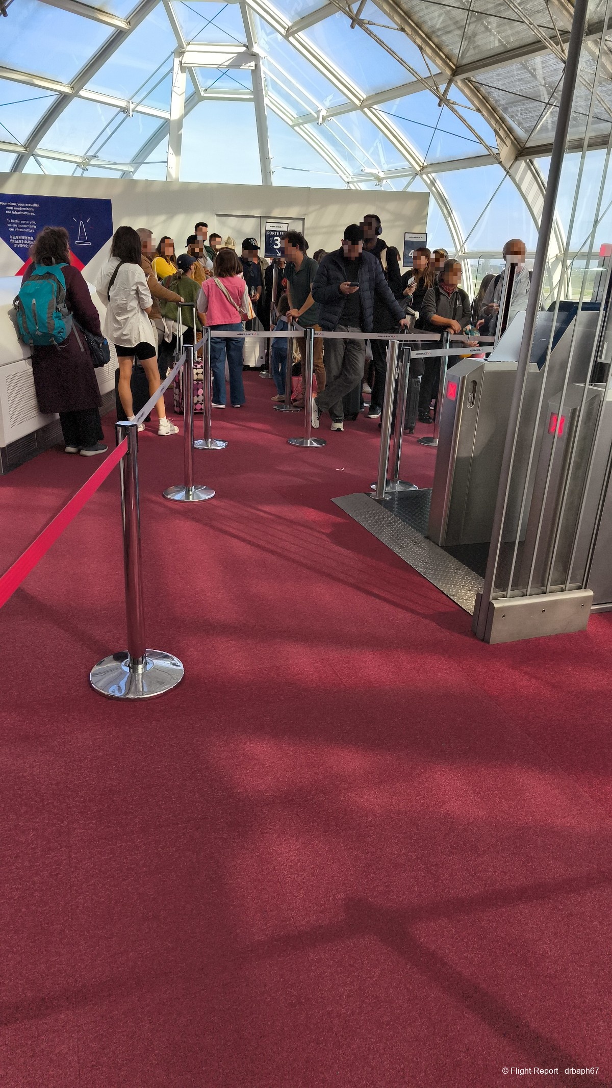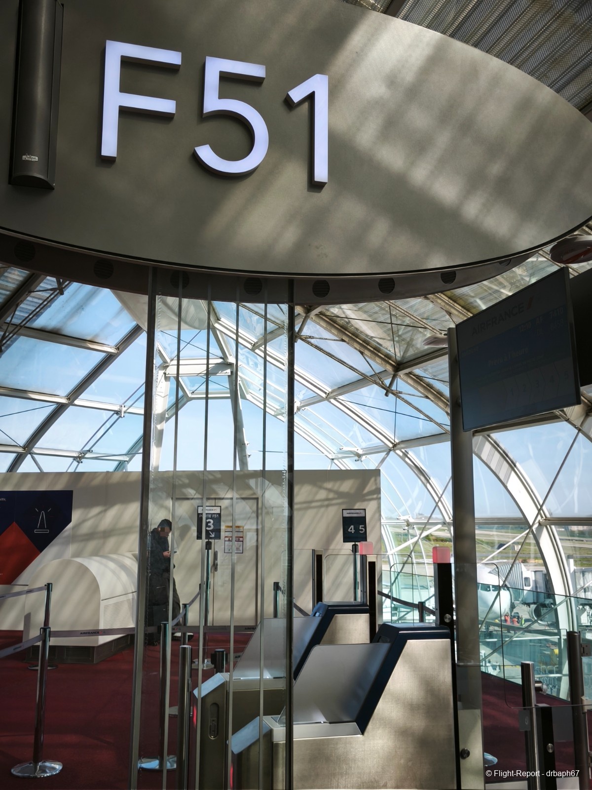 Direction ensuite les portes d'embarquement sous ces verrières du 2F. J'attendrai environ 20 min en porte avant d'embarquer à partir de la sortie du Salon.