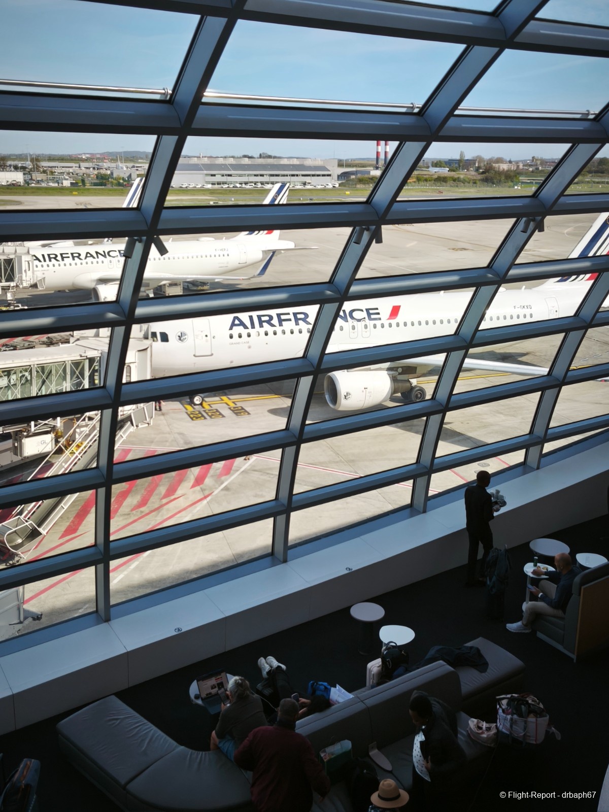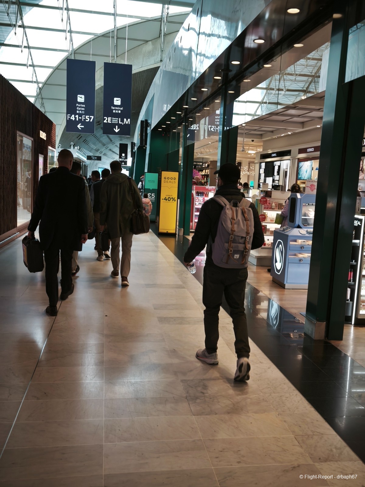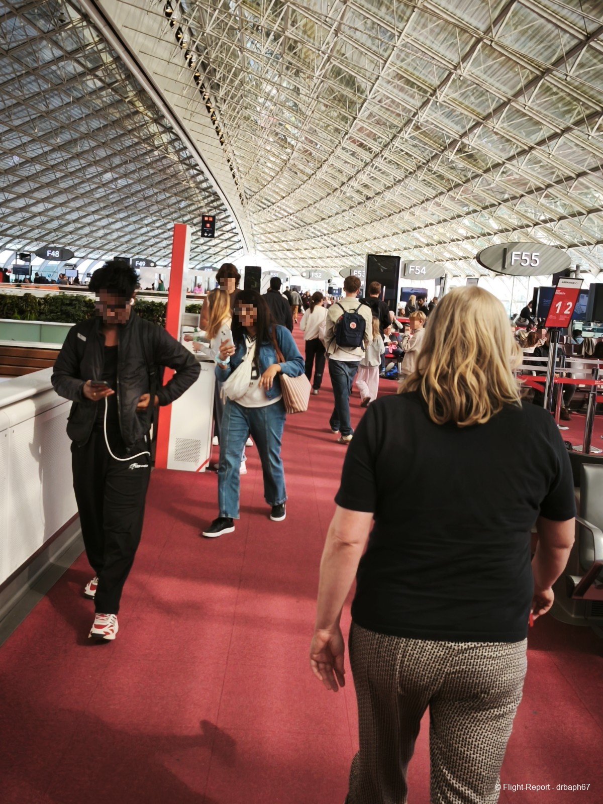 Direction ensuite les portes d'embarquement sous ces verrières du 2F. J'attendrai environ 20 min en porte avant d'embarquer à partir de la sortie du Salon.