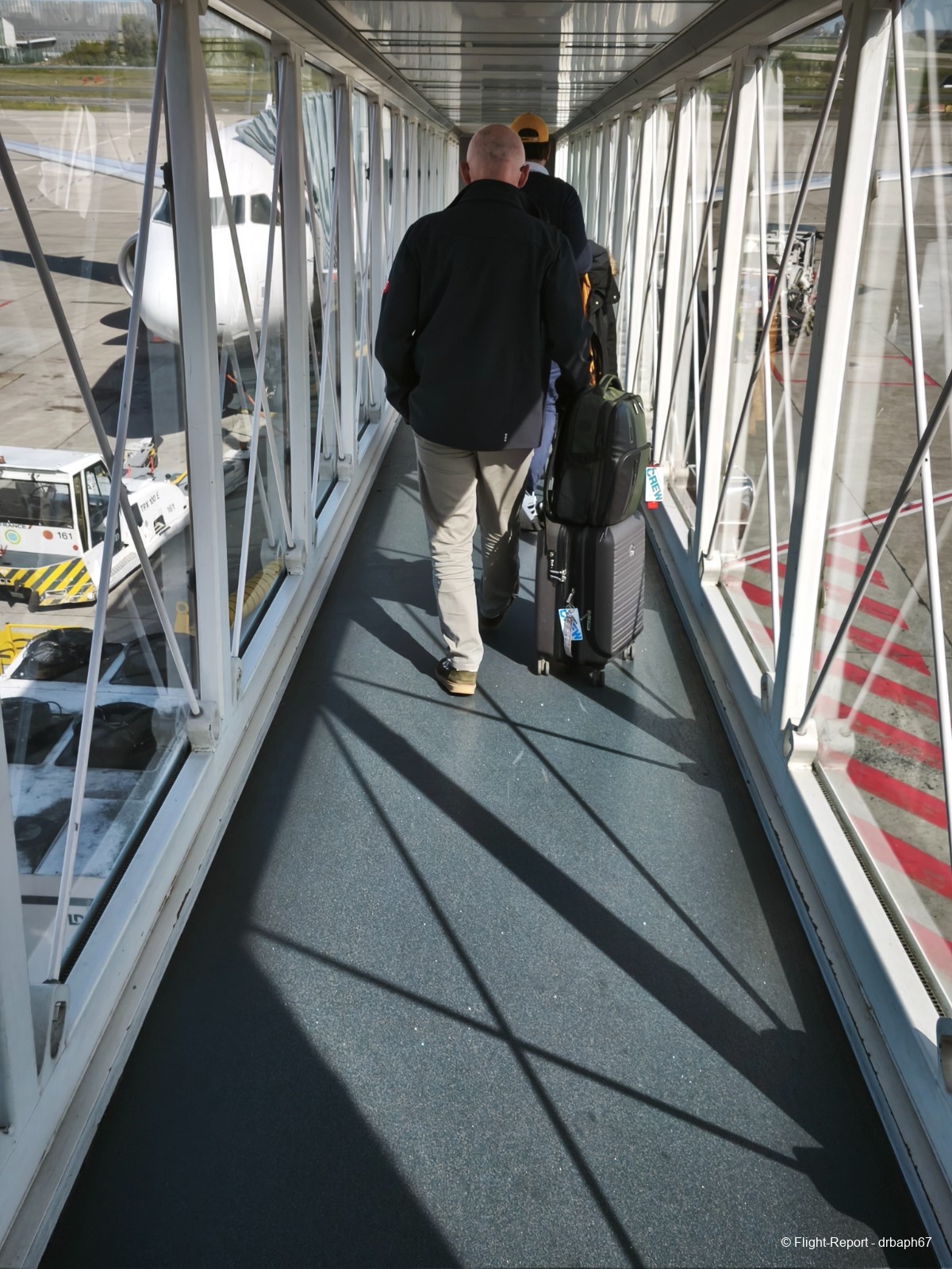 L'embarquement commence, j'investis la passerelle et me dirige vers l'A320 pour Toulouse. Je prendrai les traditionnelles photos de ce passage.