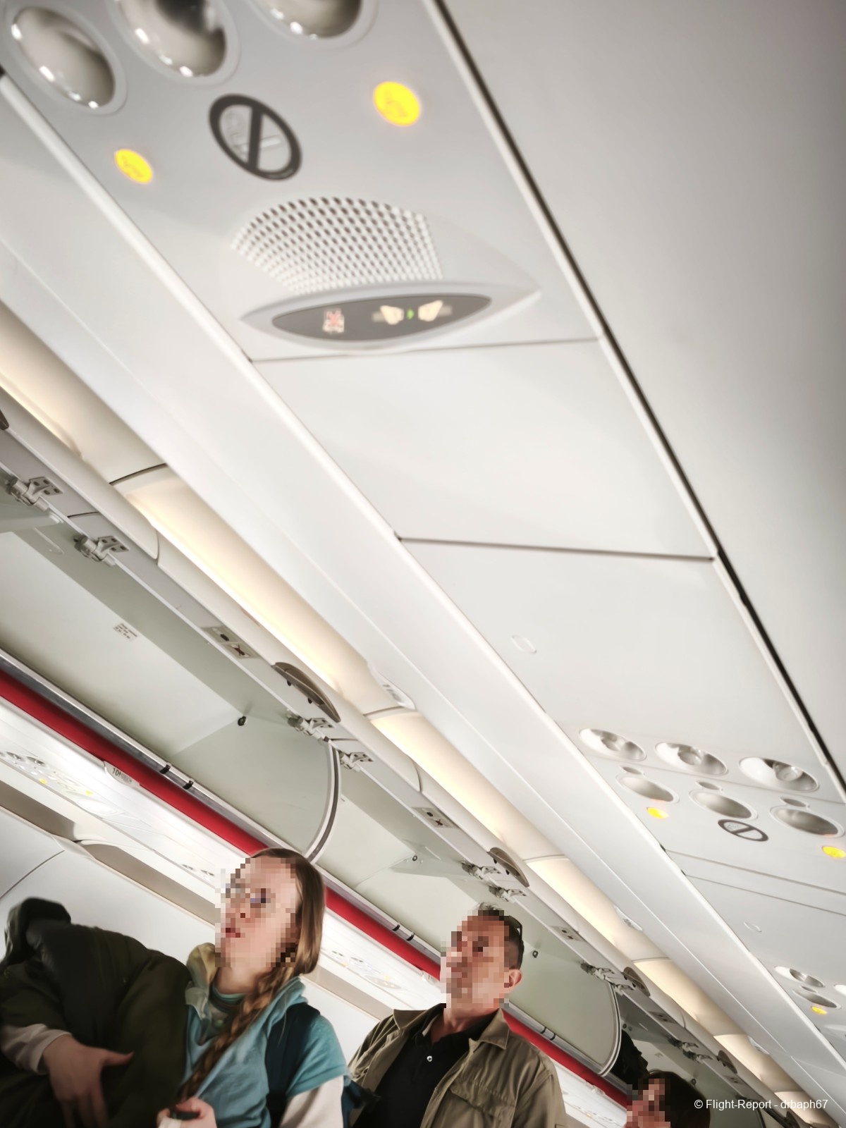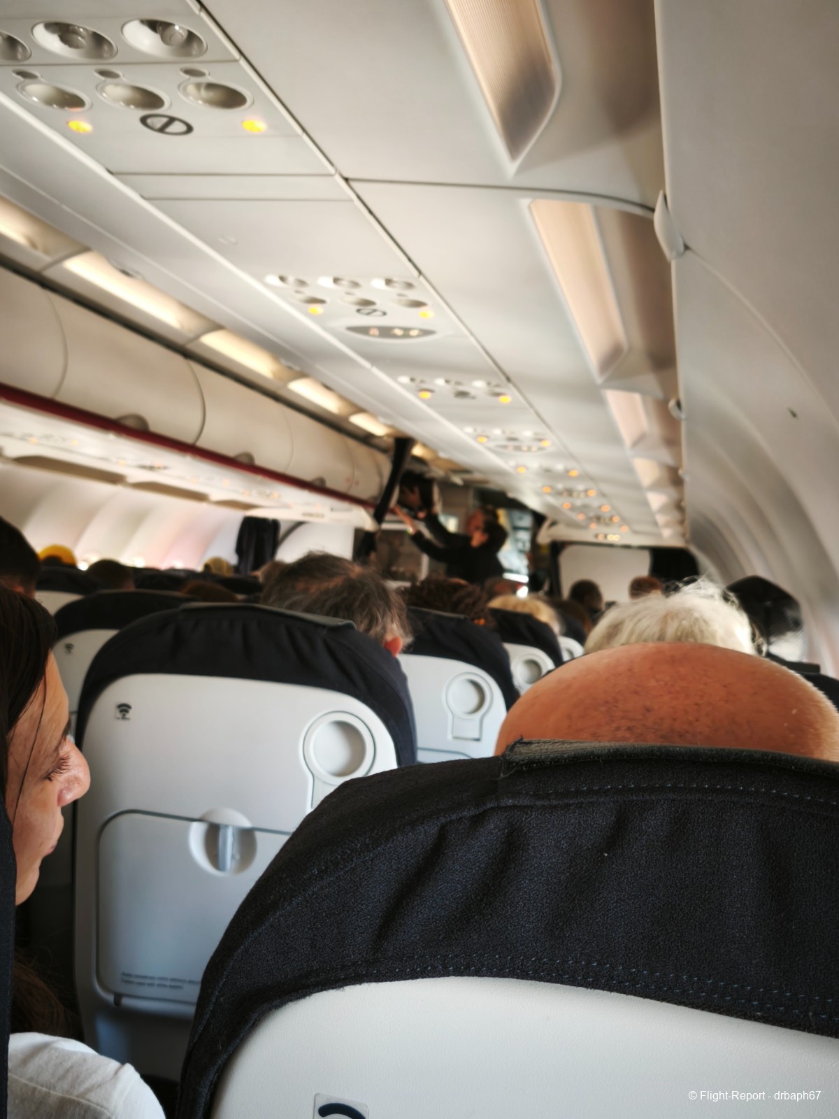 Faisons connaissance avec notre siège et notre environnement pour ce vol. Le vol semble bien rempli mais pas plein à craquer. L'A320 a l'air récent.