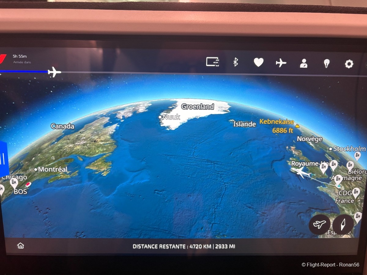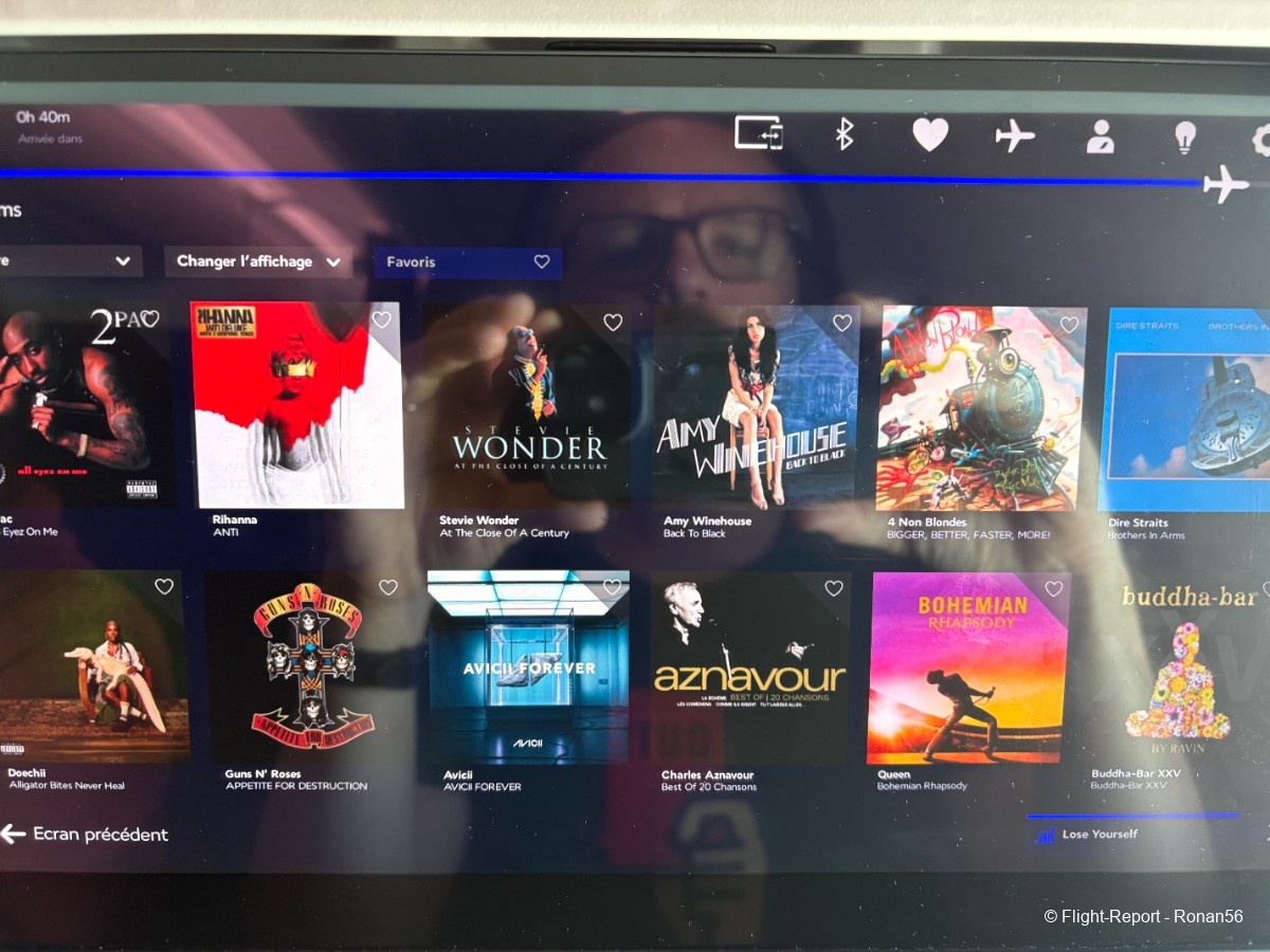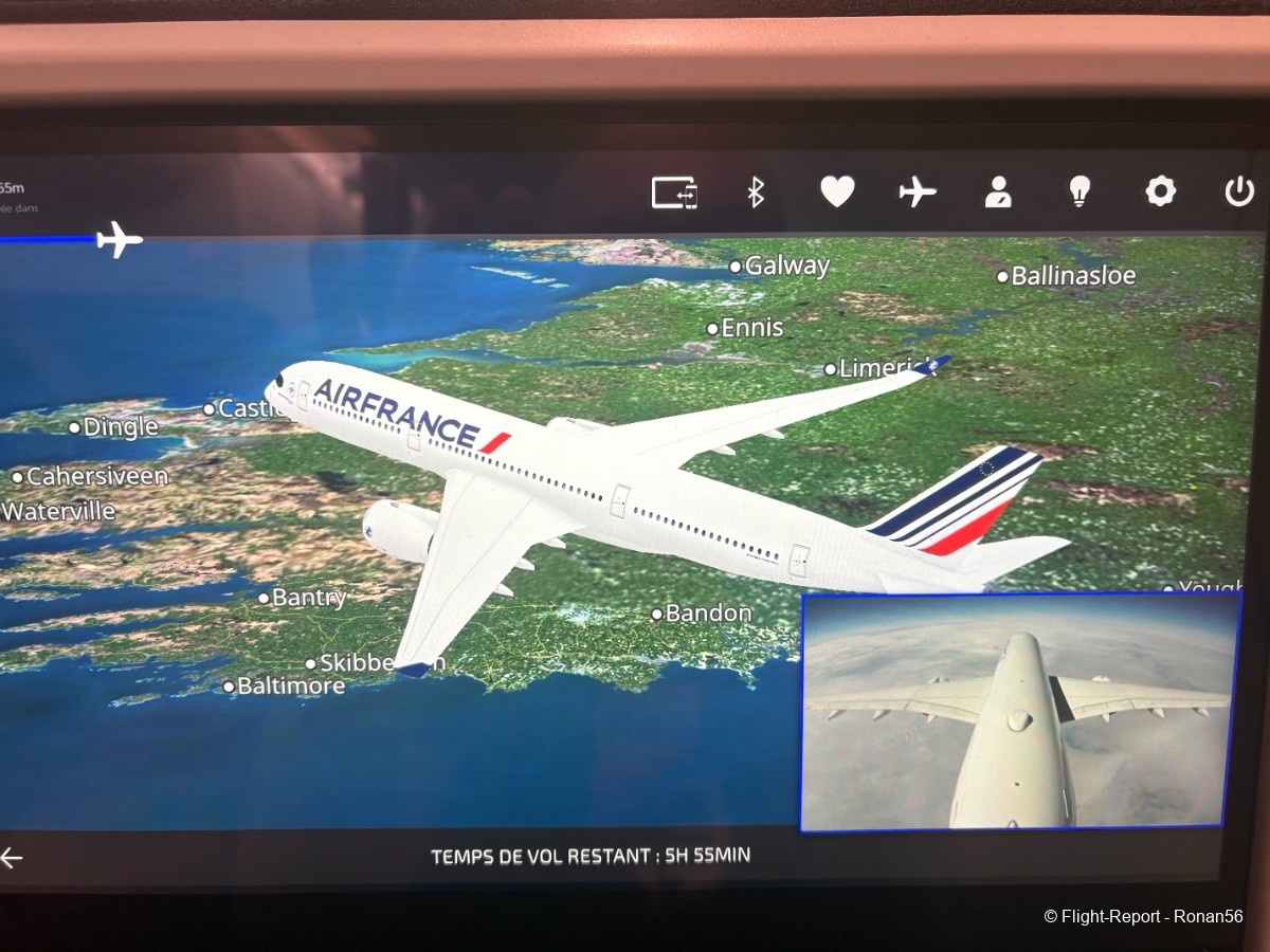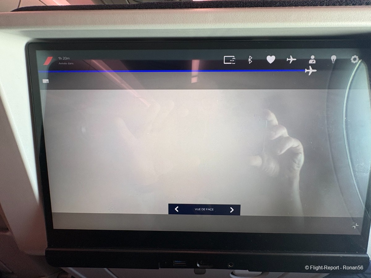 Le vol se poursuivra entre tranquillement entre visionnage de film (l'offre est conséquente sur l'IFE) et géo vision. Très pratique aussi sur cette IFE de pouvoir connecté en Bluetooth son casque.