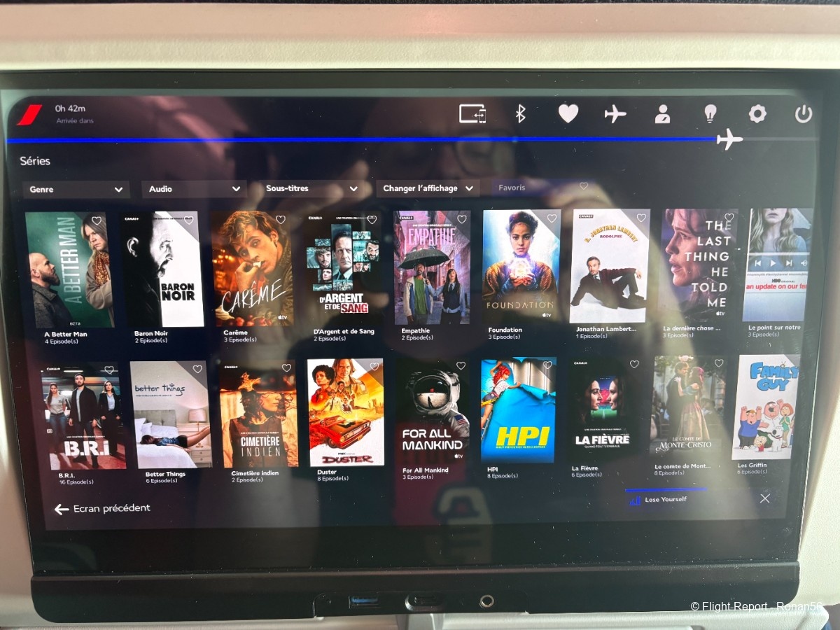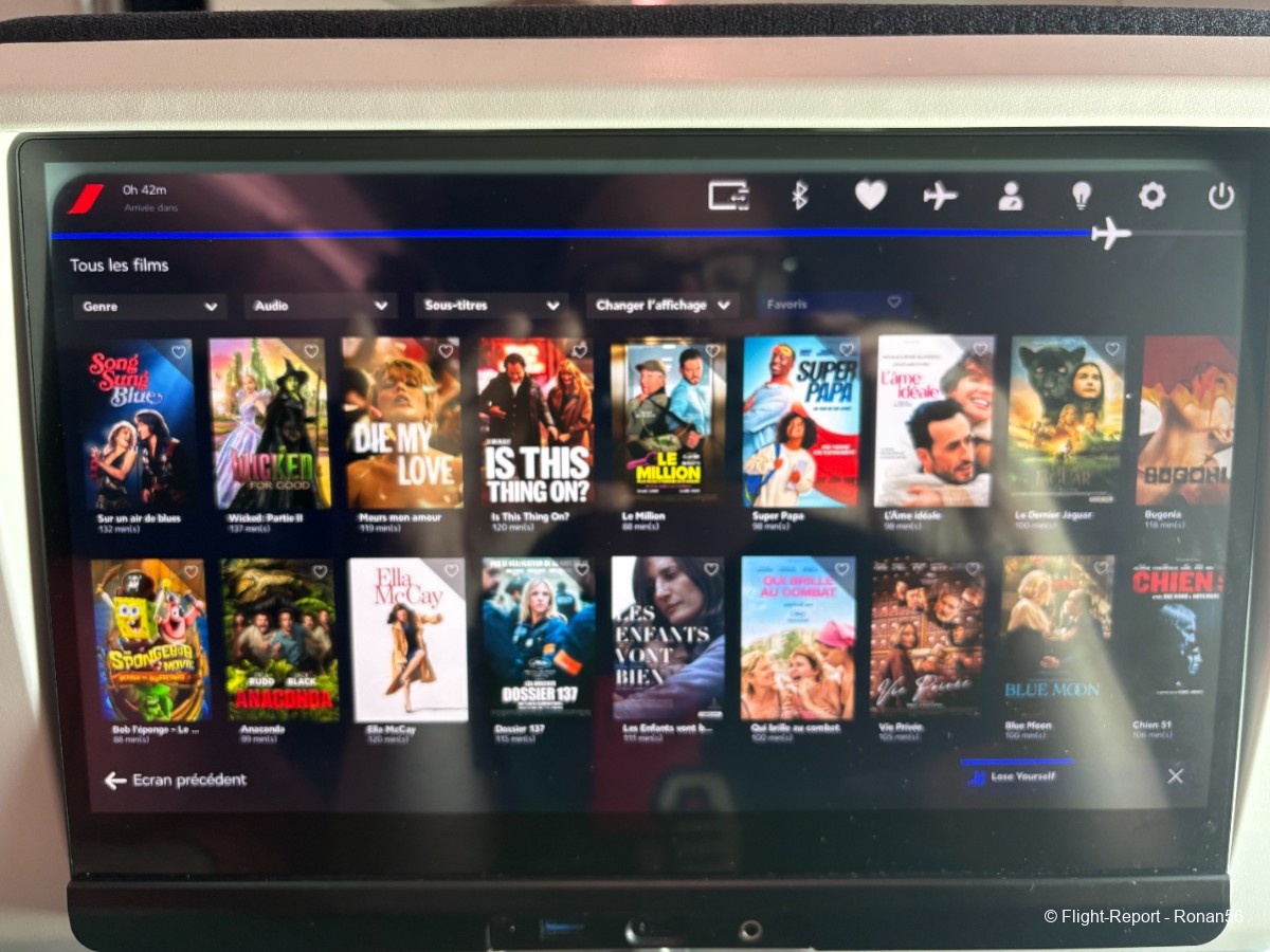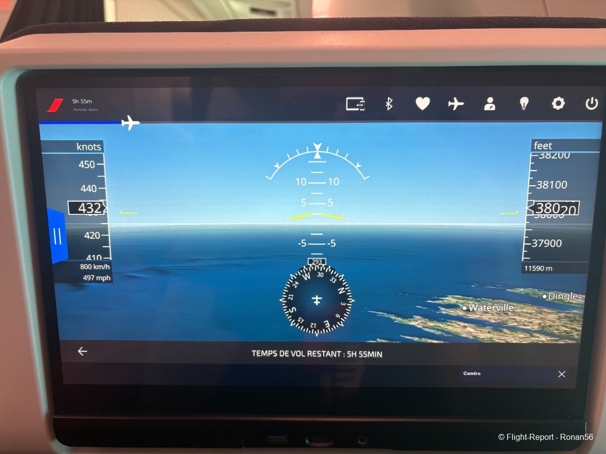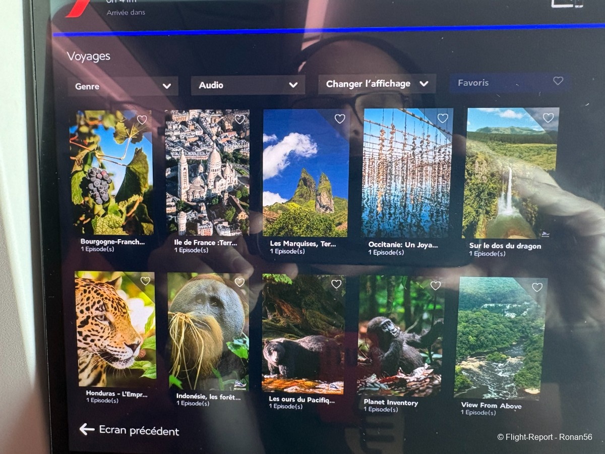 Le vol se poursuivra entre tranquillement entre visionnage de film (l'offre est conséquente sur l'IFE) et géo vision. Très pratique aussi sur cette IFE de pouvoir connecté en Bluetooth son casque.