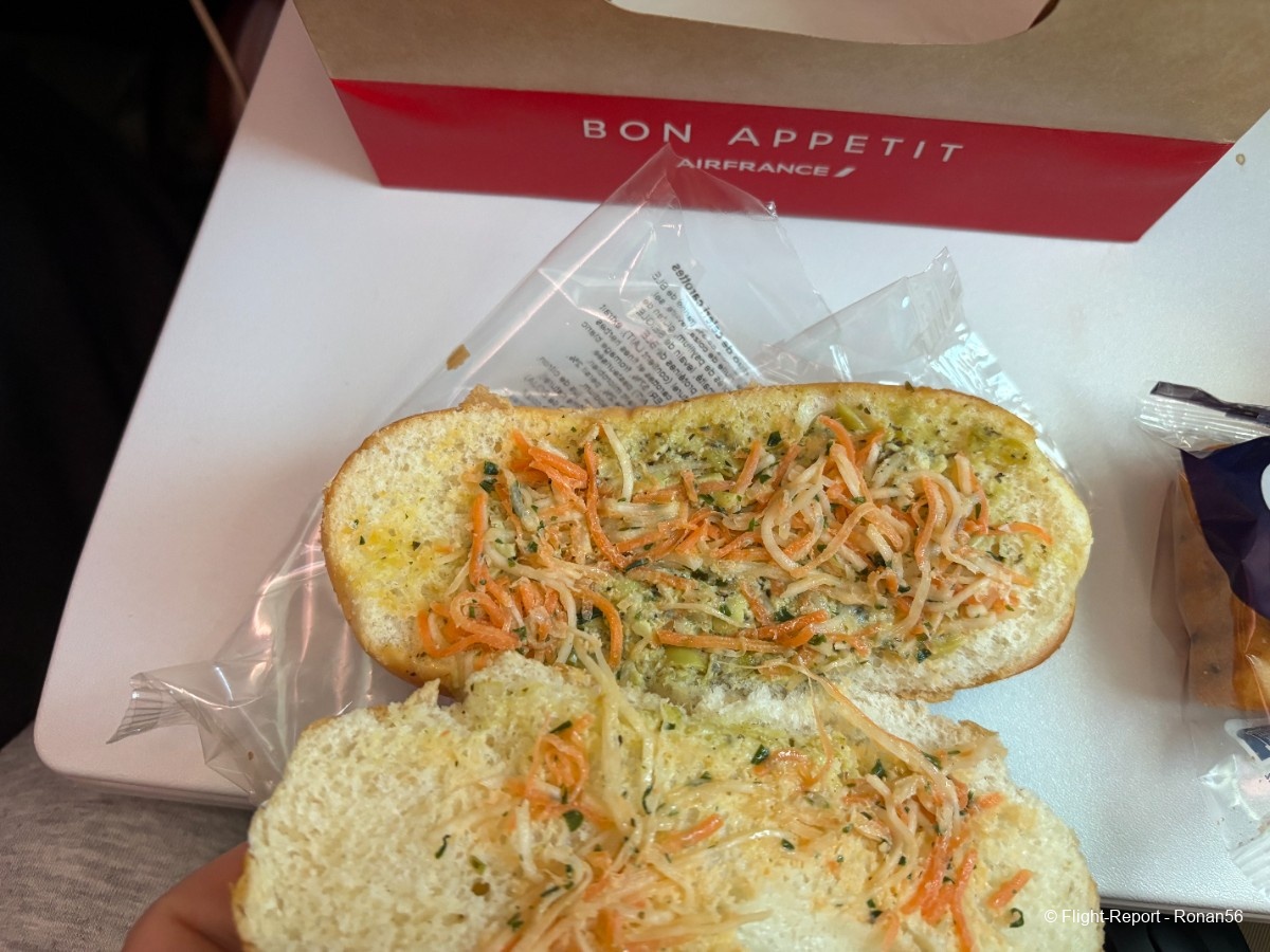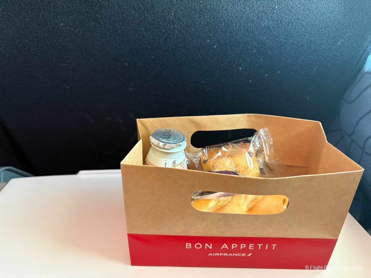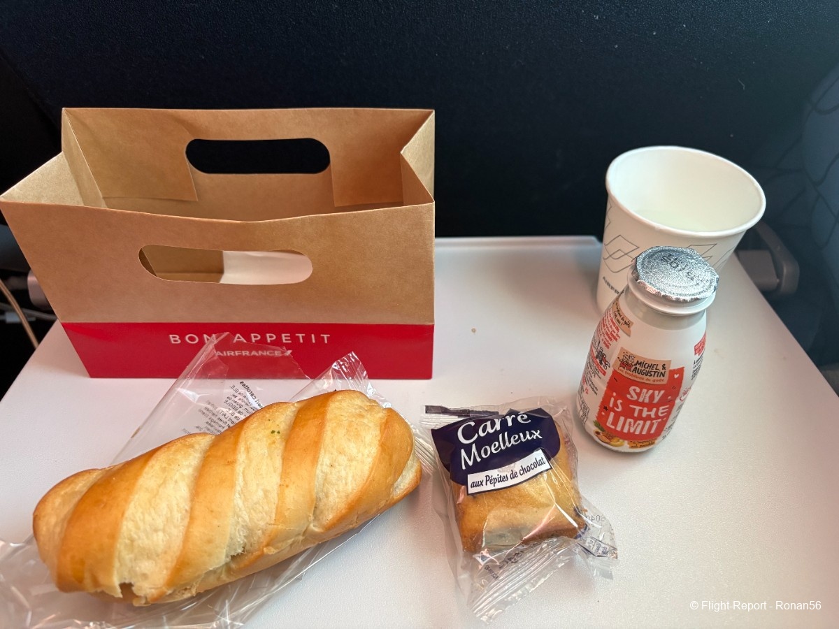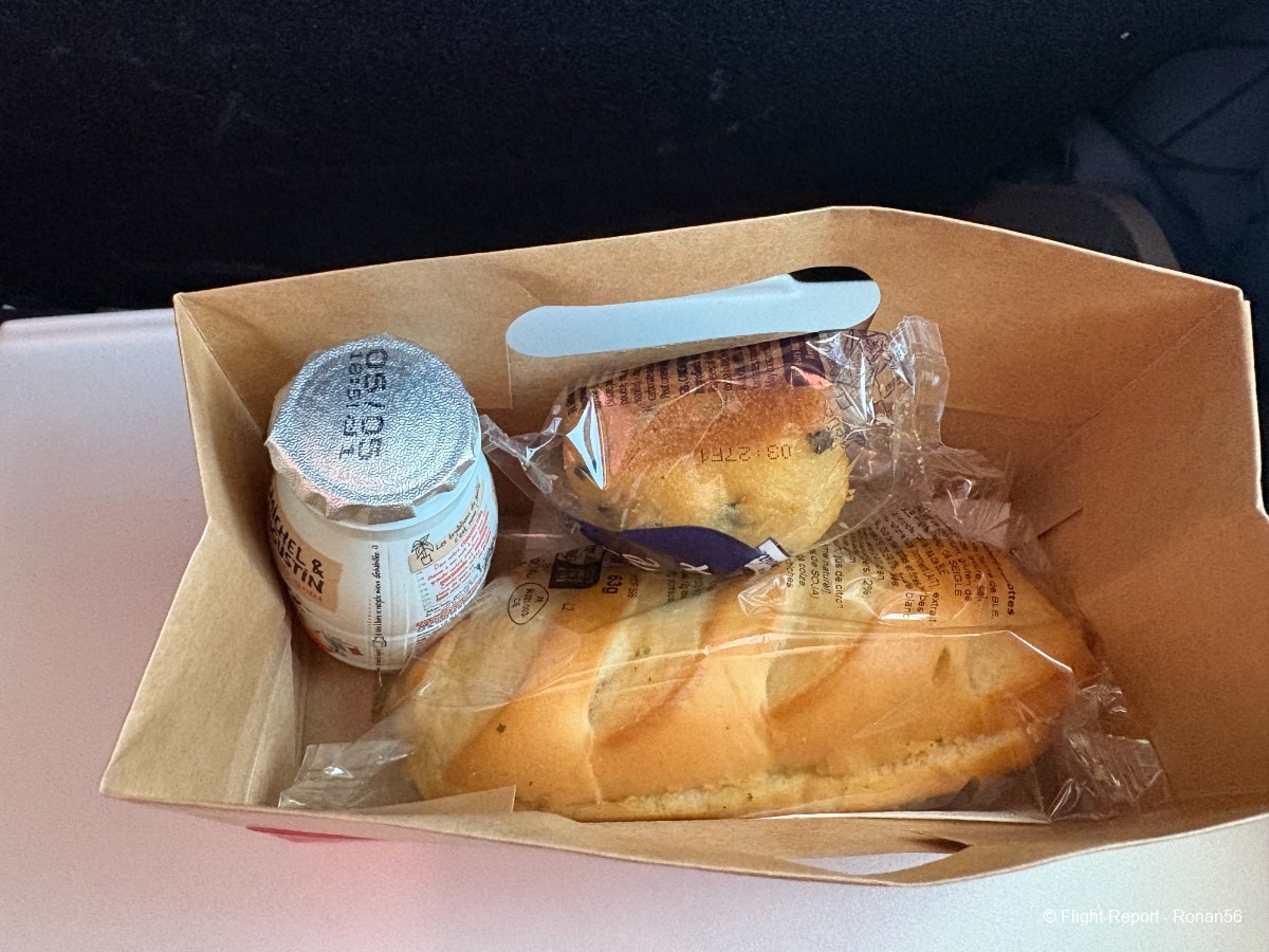 1h avant l'arrivée, le 2ème service est apporté, c'est pas fou fou mais ça fait le boulot, yaourt à boire, cake au pépite de chocolat et sandwich au cèleri et carotte