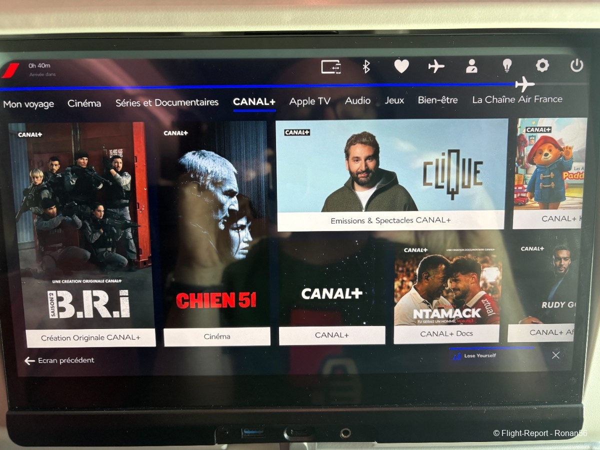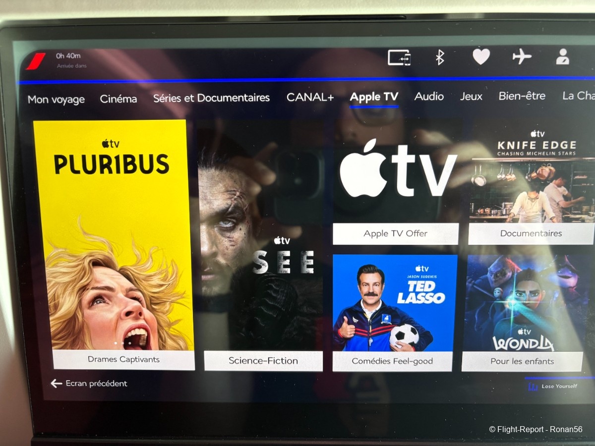 My canal et Apple TV sont disponible en limités sur l'IFE et aussi une multitude de film plus ou moins récents, documentaires, spectacles, audio