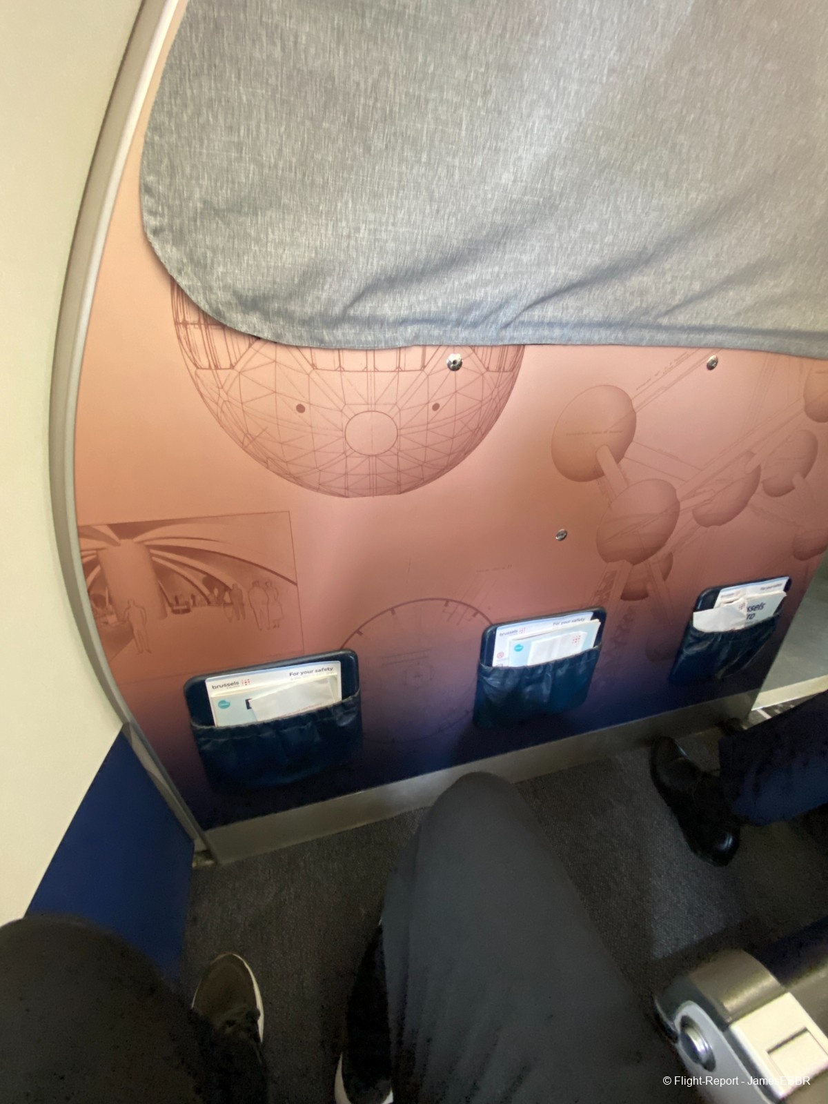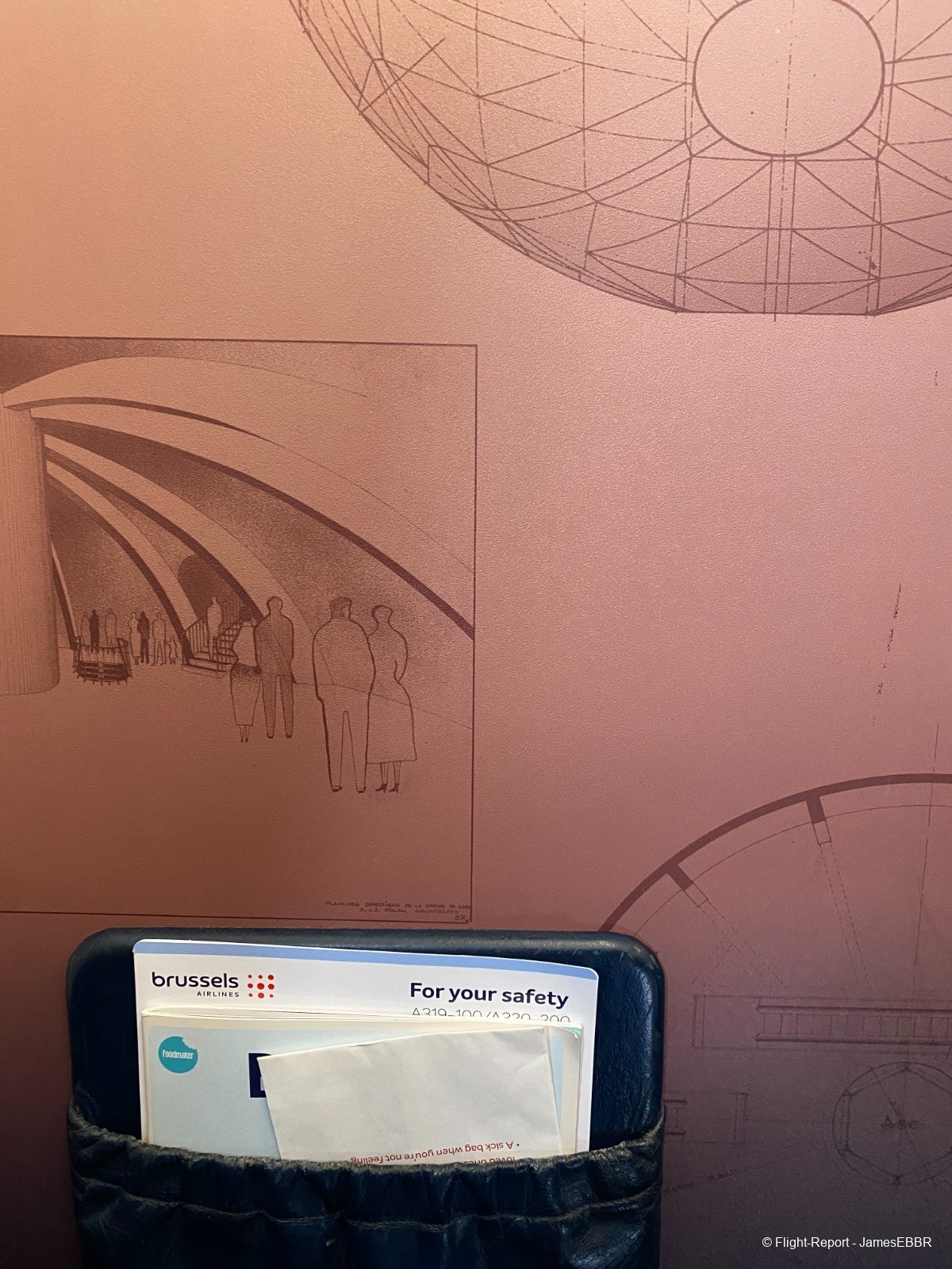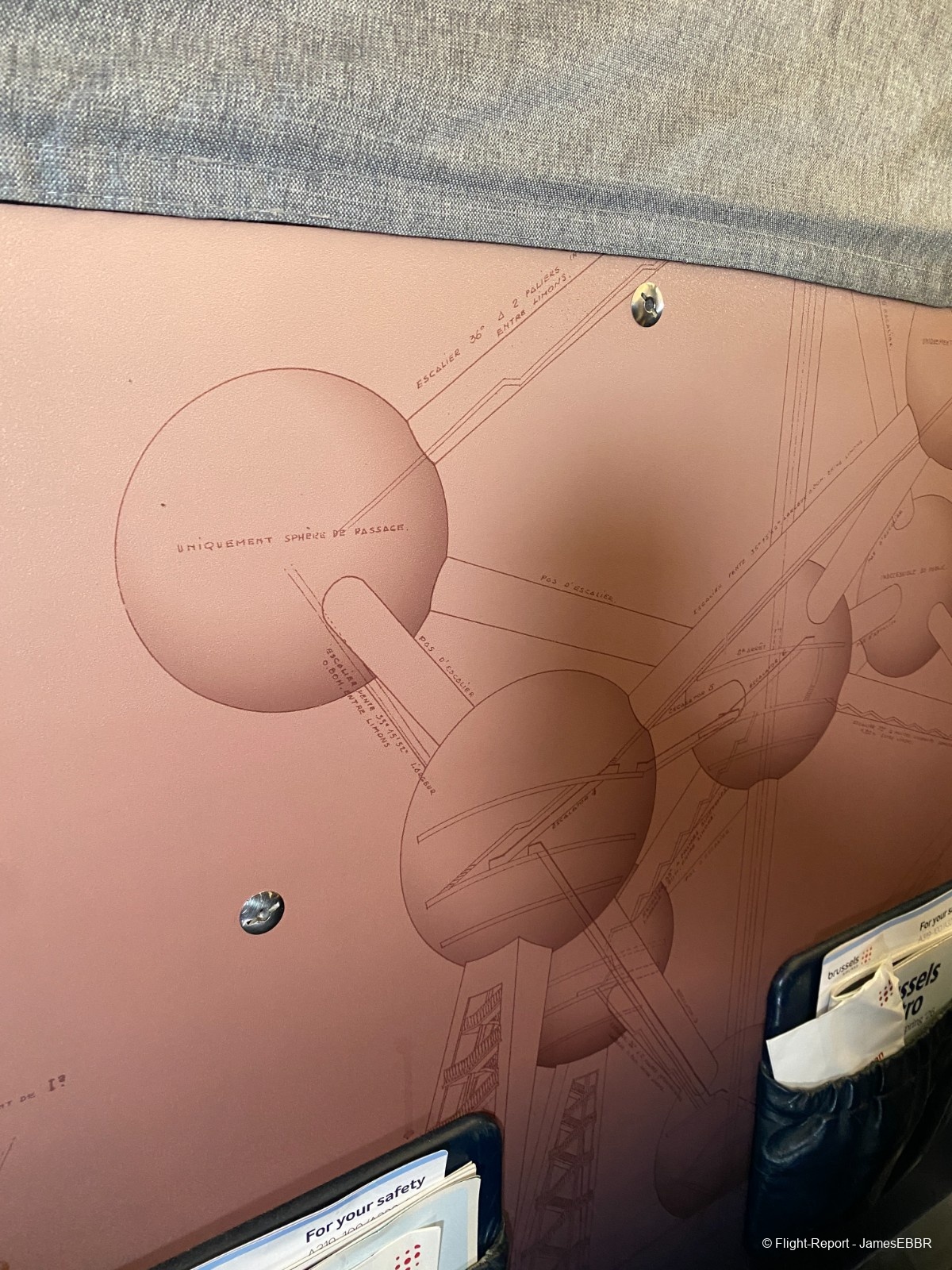 On retrouve des détails Atomium absolument partout : sur les parois, dans les compartiments à bagages et même sur la moquette.