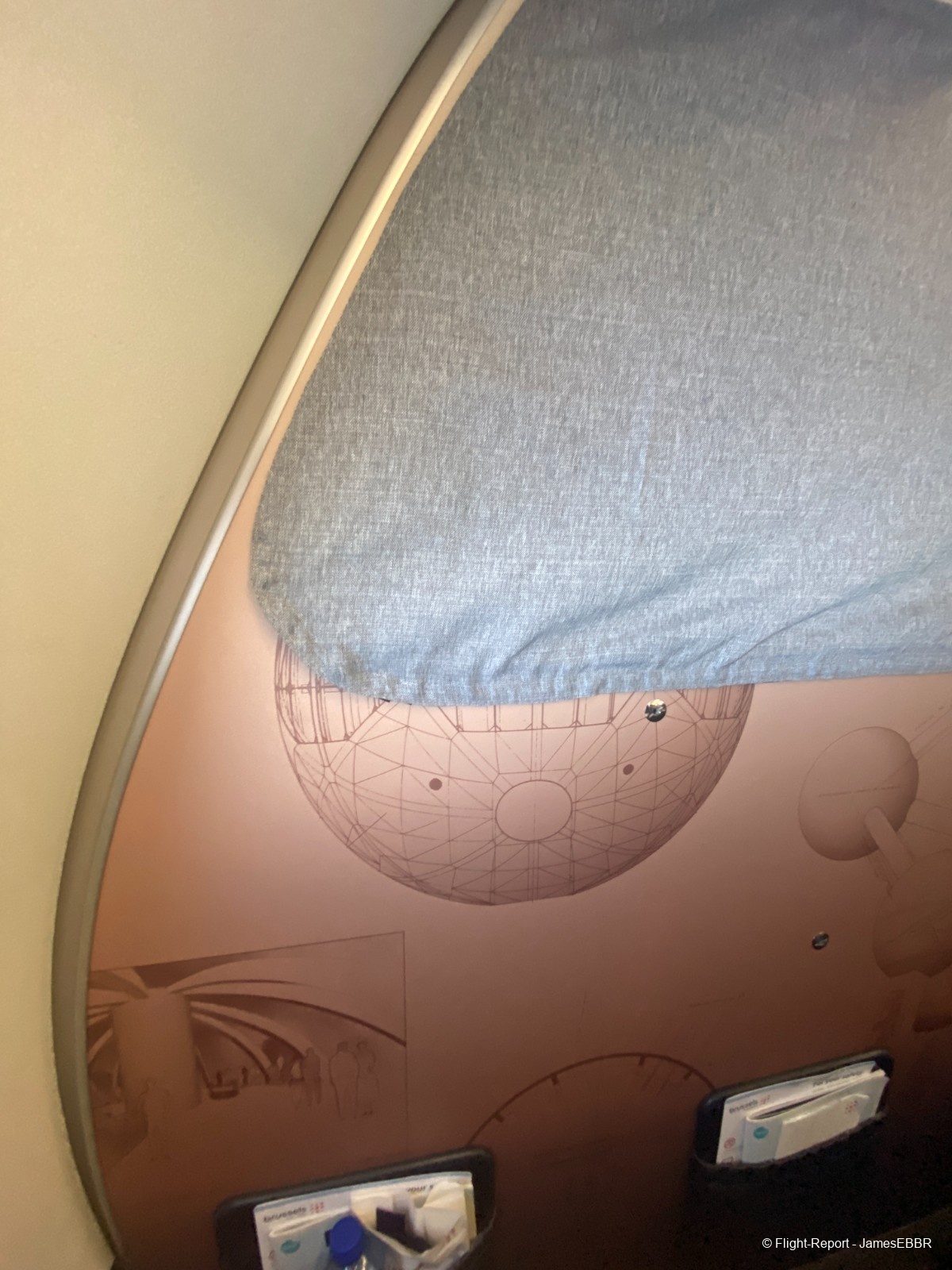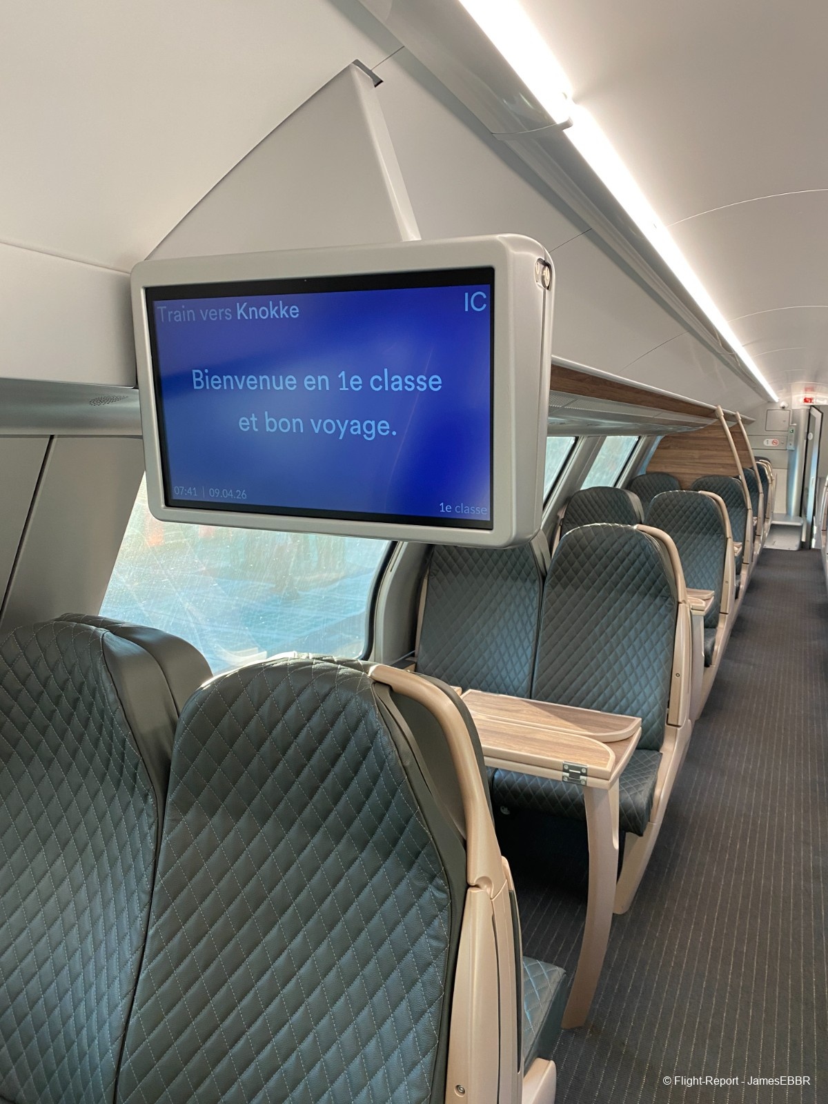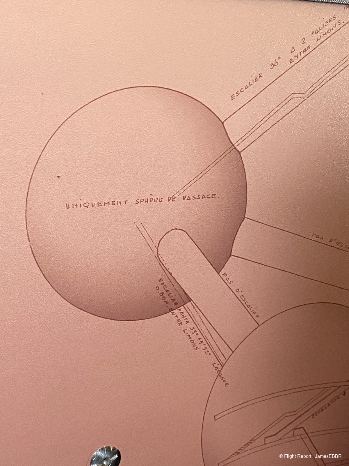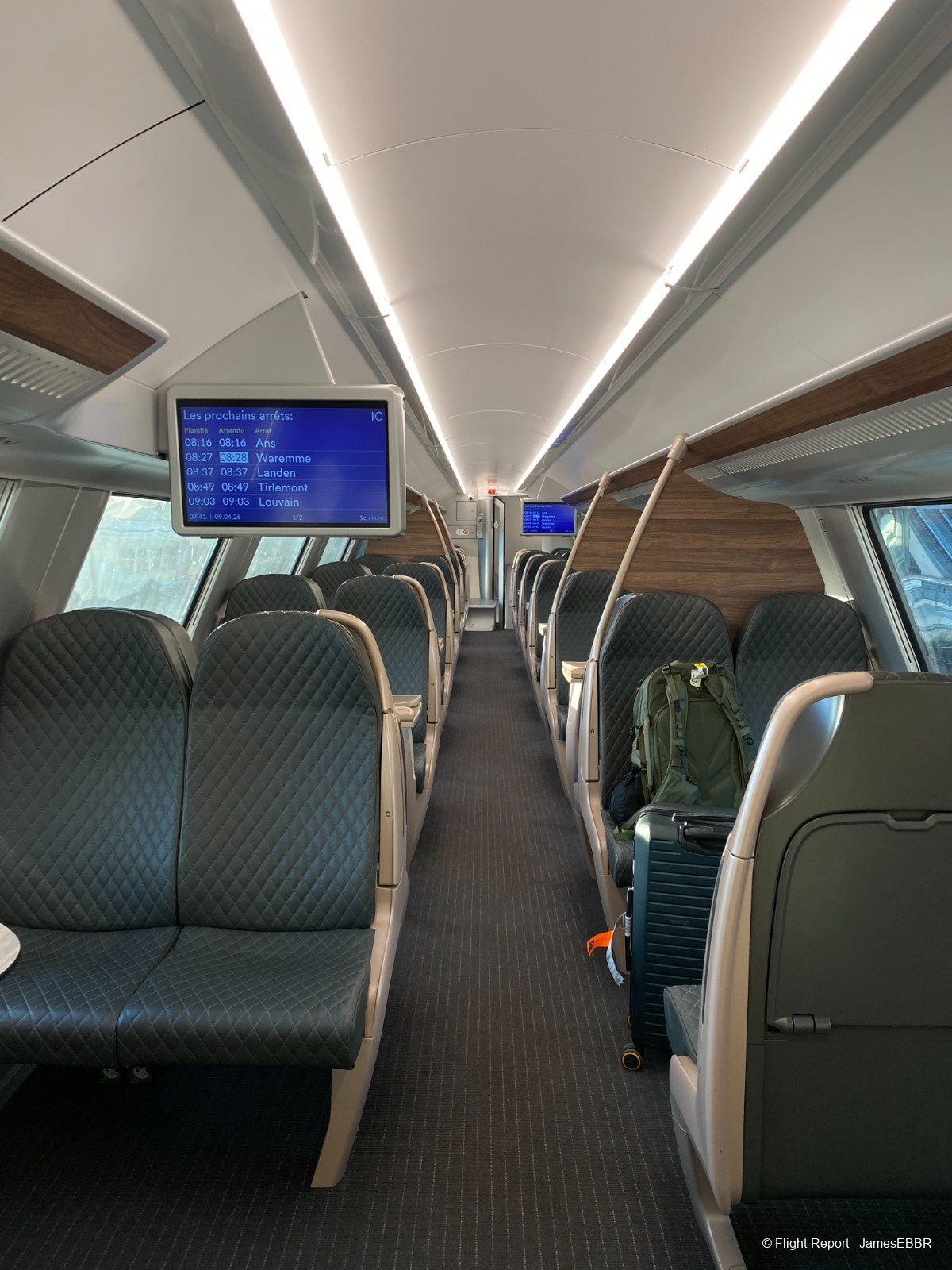 On retrouve des détails Atomium absolument partout : sur les parois, dans les compartiments à bagages et même sur la moquette.