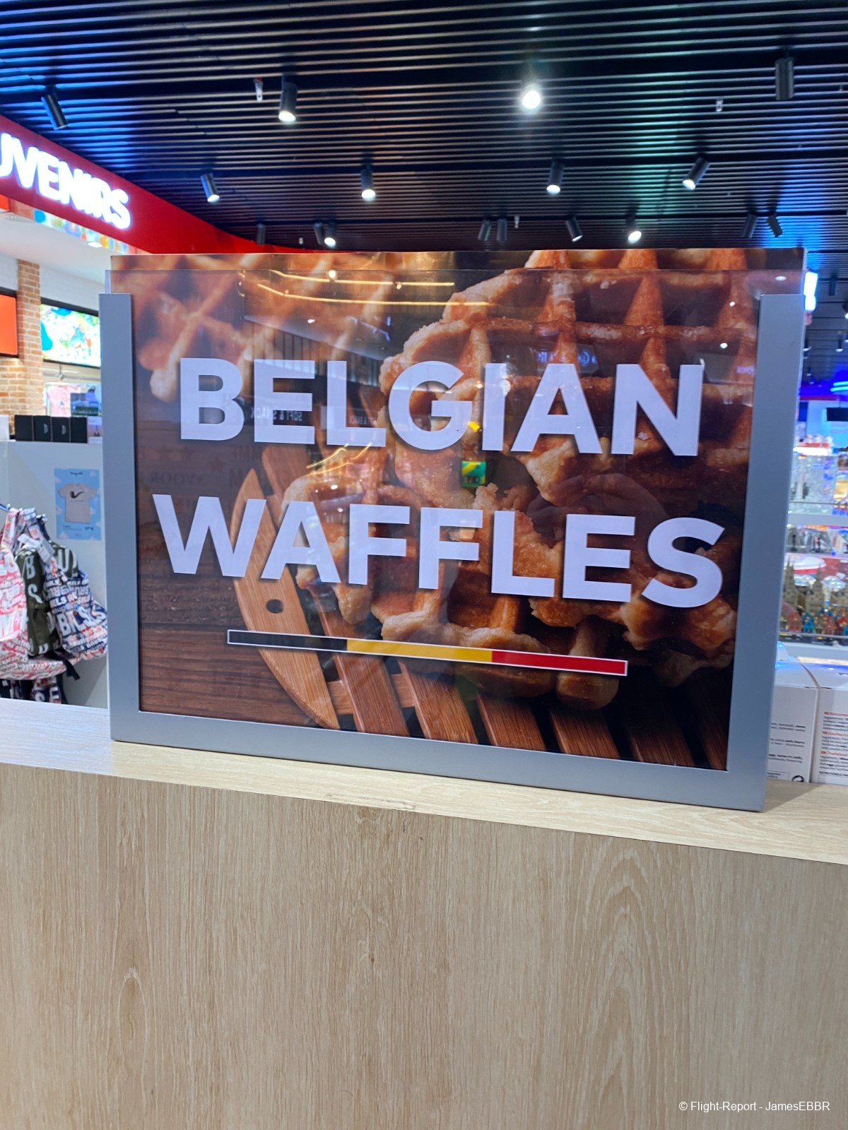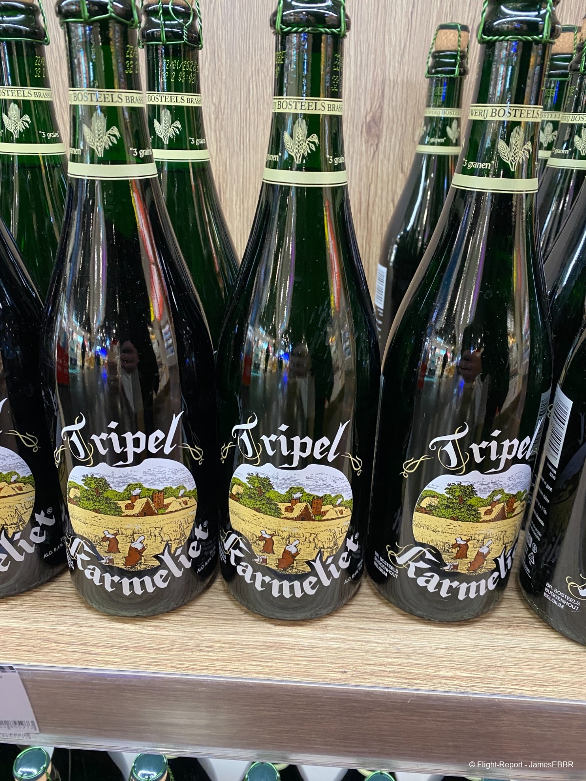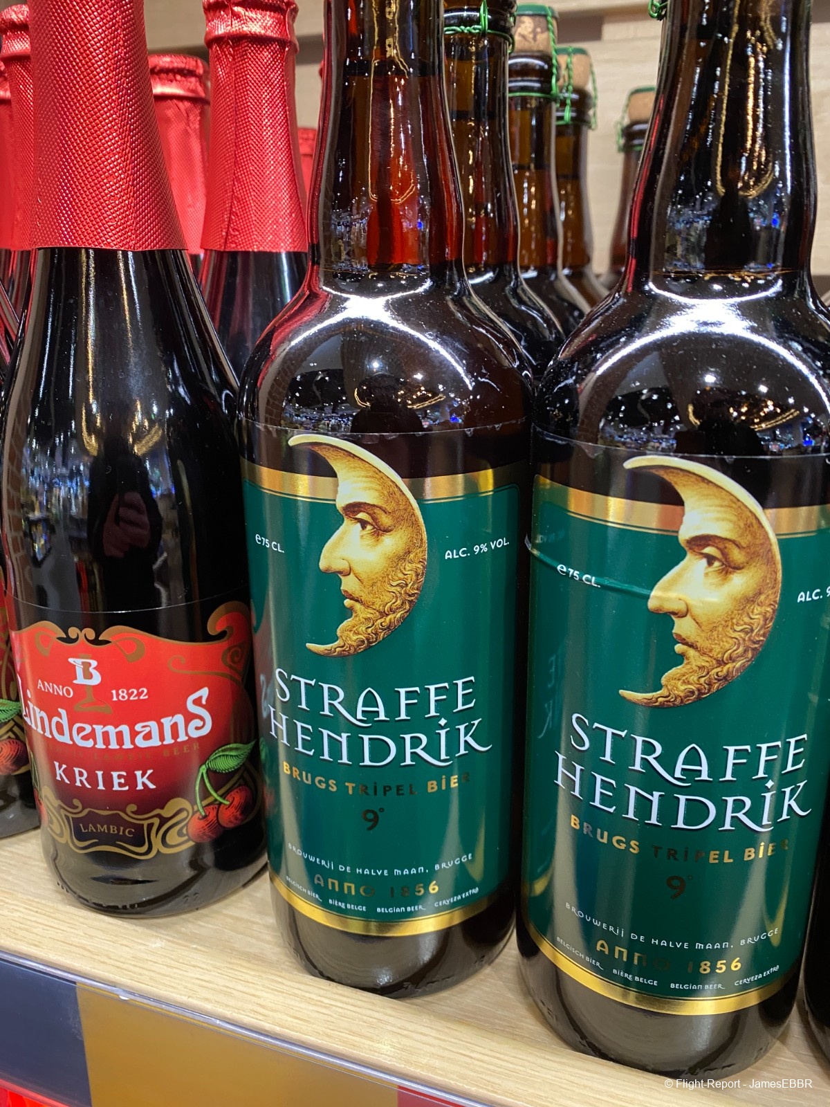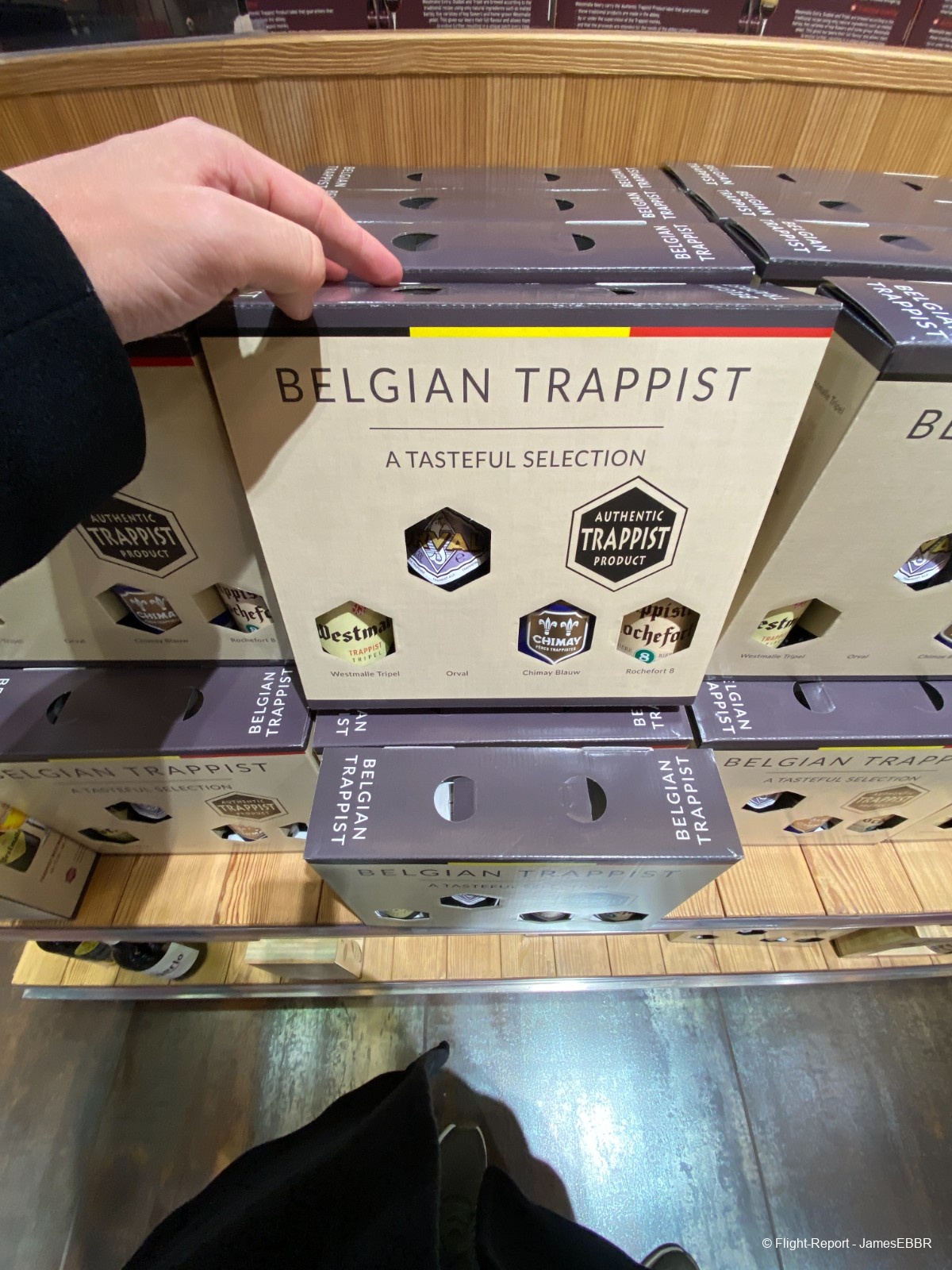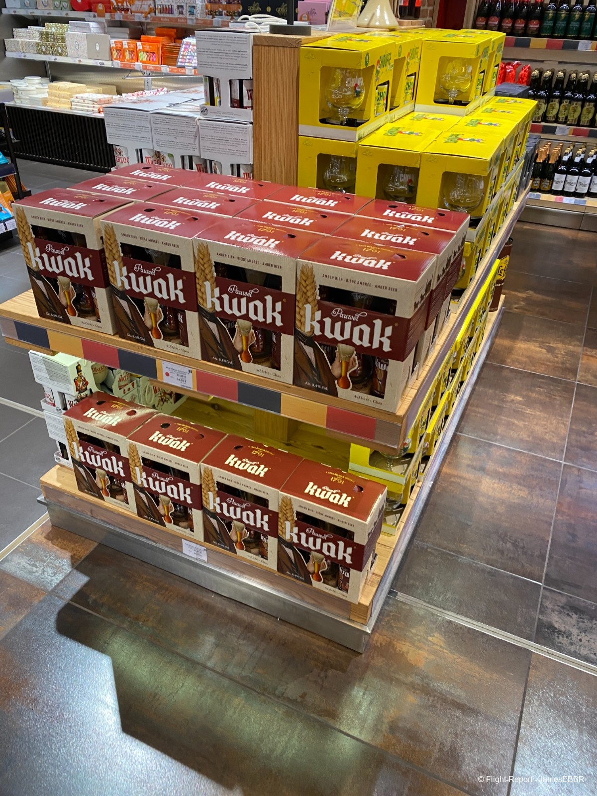 Le duty free d'EBBR propose une large sélection de produits belges, notamment un grand choix de bières, ainsi que des gaufres et des fromages.