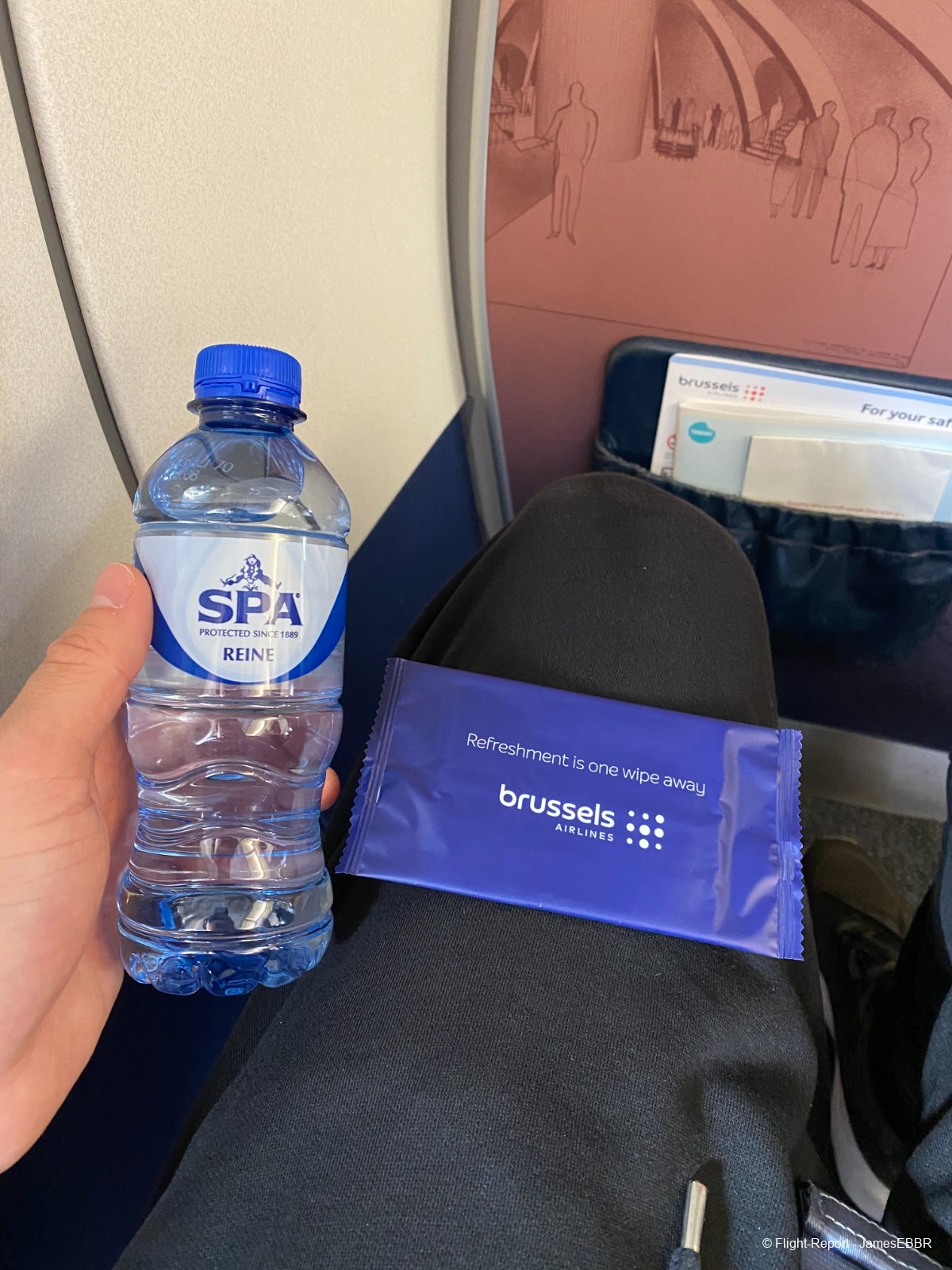 À la fin de l'embarquement, une lingette rafraîchissante et une bouteille d'eau sont distribuées. Cela m'a rappelé Air France.