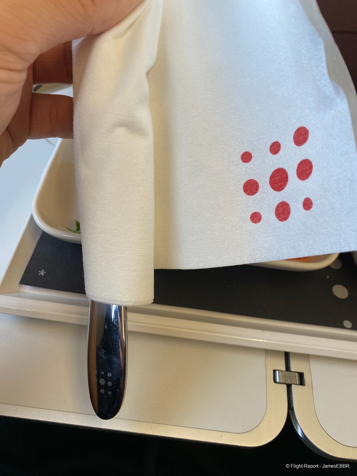 J'ai beaucoup apprécié le logo de SN sur le plateau, les serviettes, les verres et les couverts.