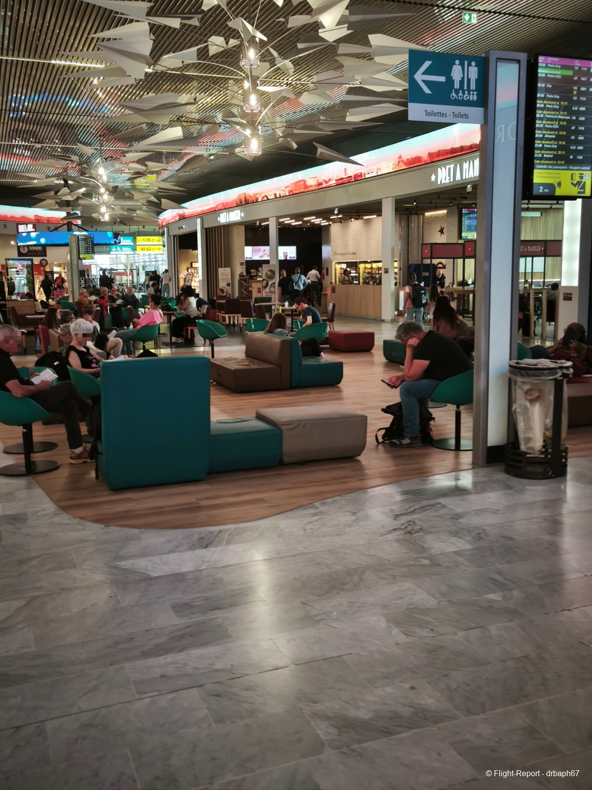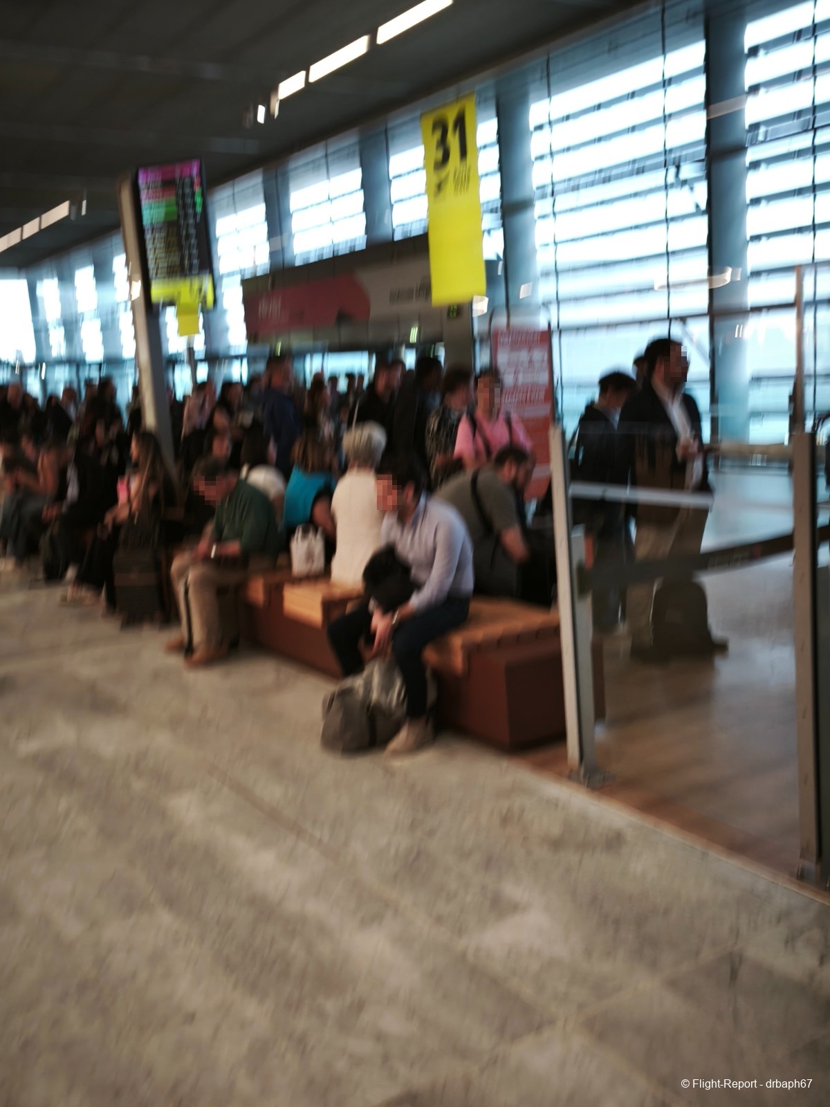 Je traverse la zone publique rapidement sans nostalgie de mes nombreux passages avant l'accès au Salon. J'arrive au Salon de la Croix du Sud. J'en profite pour aller voir la porte d'embarquement et de spotter rapidement les vols Air France vers CDG.