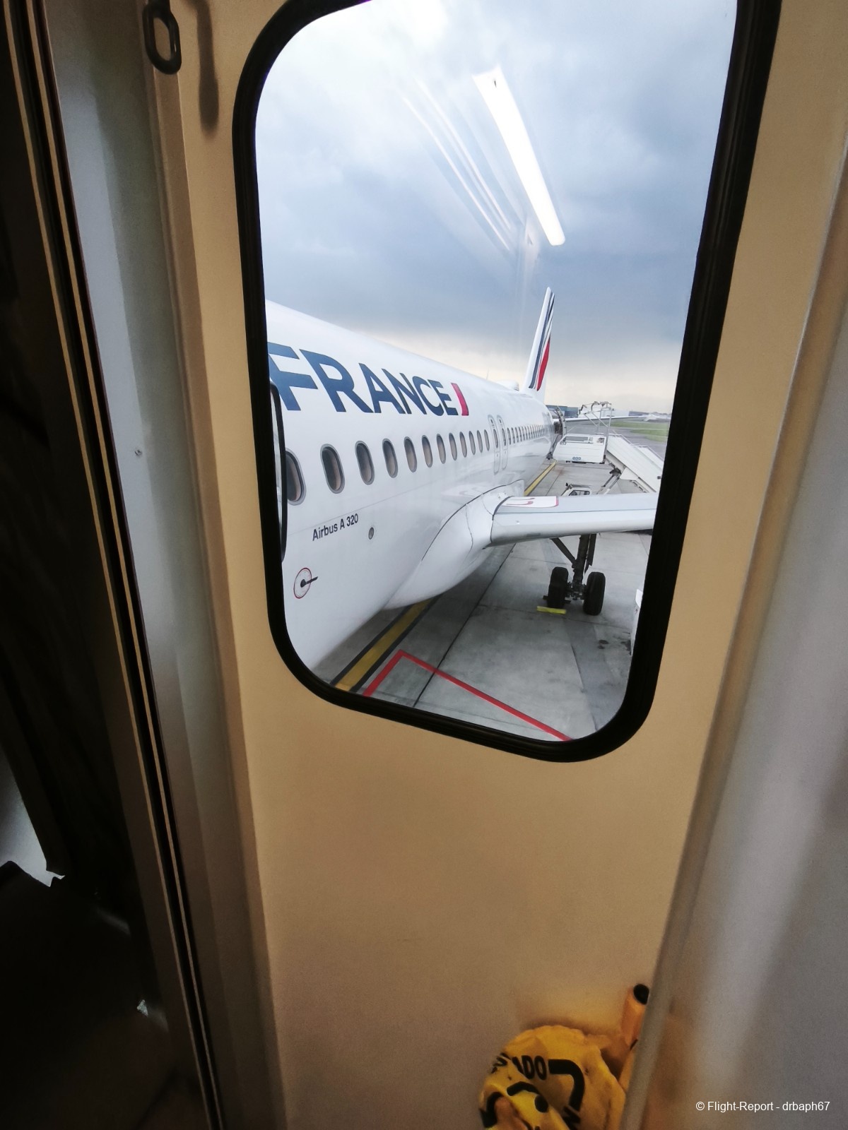 Le vol sera calme malgré la pluie. J'y prendrai un verre d'eau gazeuse lors du service. Quelques photos du vol Air France !