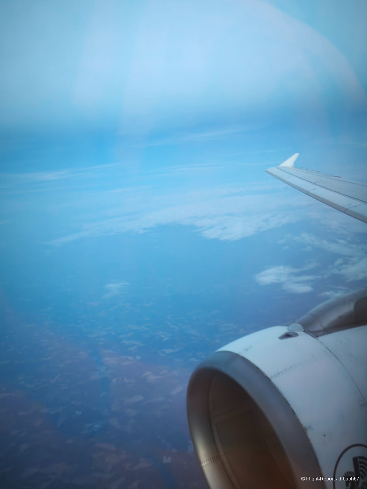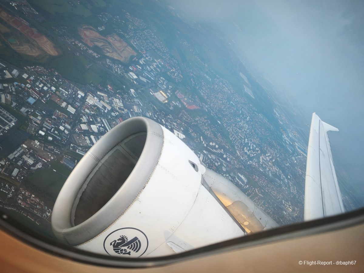 Nous roulons et décollons 12 minutes après le repoussage soit 2 minutes après l'heure de départ théorique. Le ciel sera bien nuageux au départ et il pleut sur Toulouse. Comme il y aura un siège entre mon voisin et moi j'aurais l'impression de voyager sur de la business Europe et domestique sans collation.