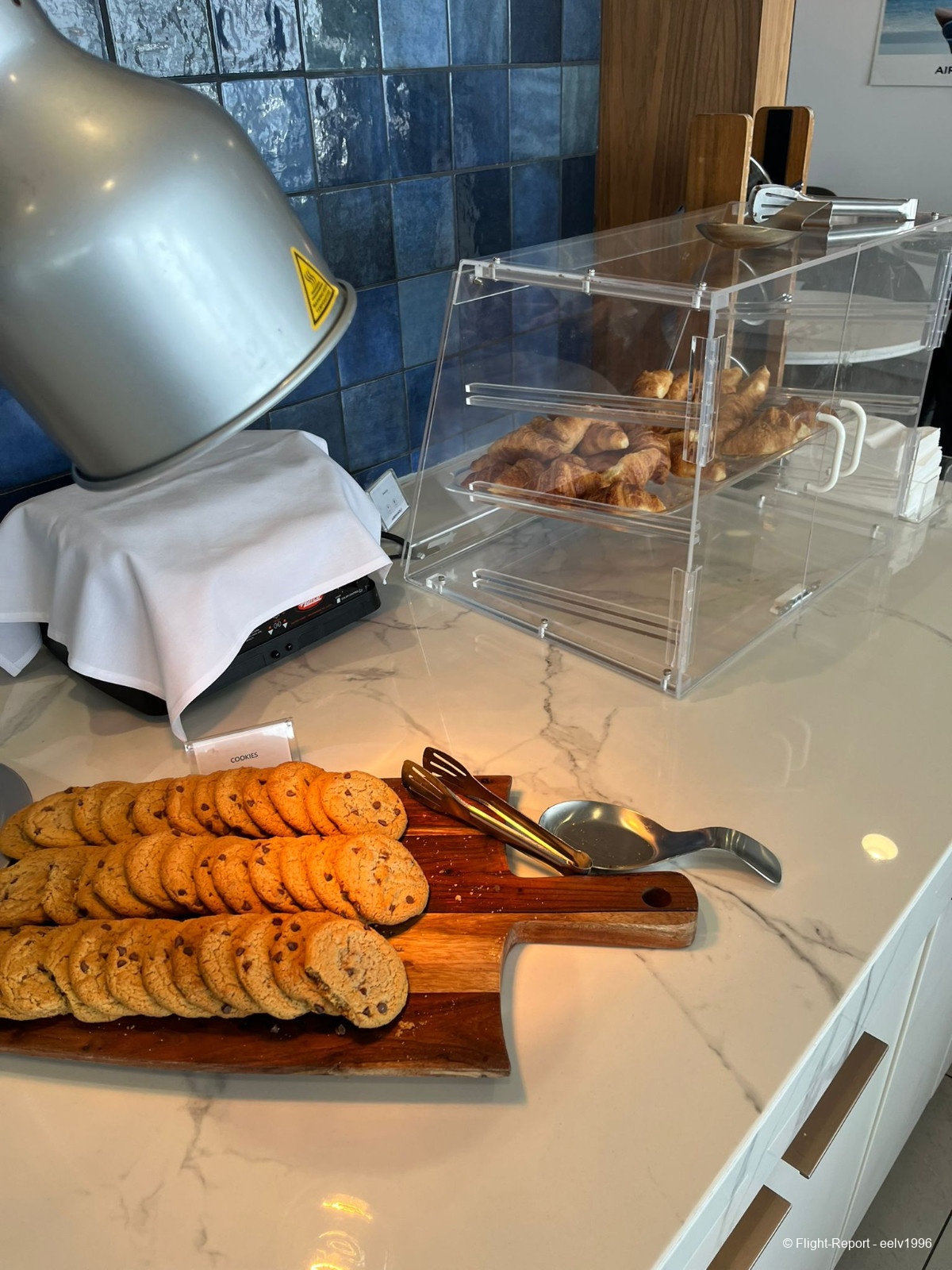Pas mal de choix d'entrées (blinis au tarama, salade de pâtes), ainsi que plusieurs desserts : cookie, et un gâteau assez bon :